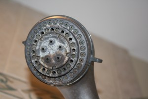I don’t usually cook on Fridays, so I thought I would post one about a DIY project. We all like to be environmentally friendly, and vinegar is a good way to do that in many cases. I use it to kill weeds on the patio, and also mix it with water and a little dish soap to spray onto the trashcans outside. It keeps the flies away pretty well. So I was kind of psyched when I saw a recipe for cleaning your shower head with a mixture of vinegar and water. The shower head in our bathroom had a bit of calcium buildup, so I thought I would try this eco-friendly method.