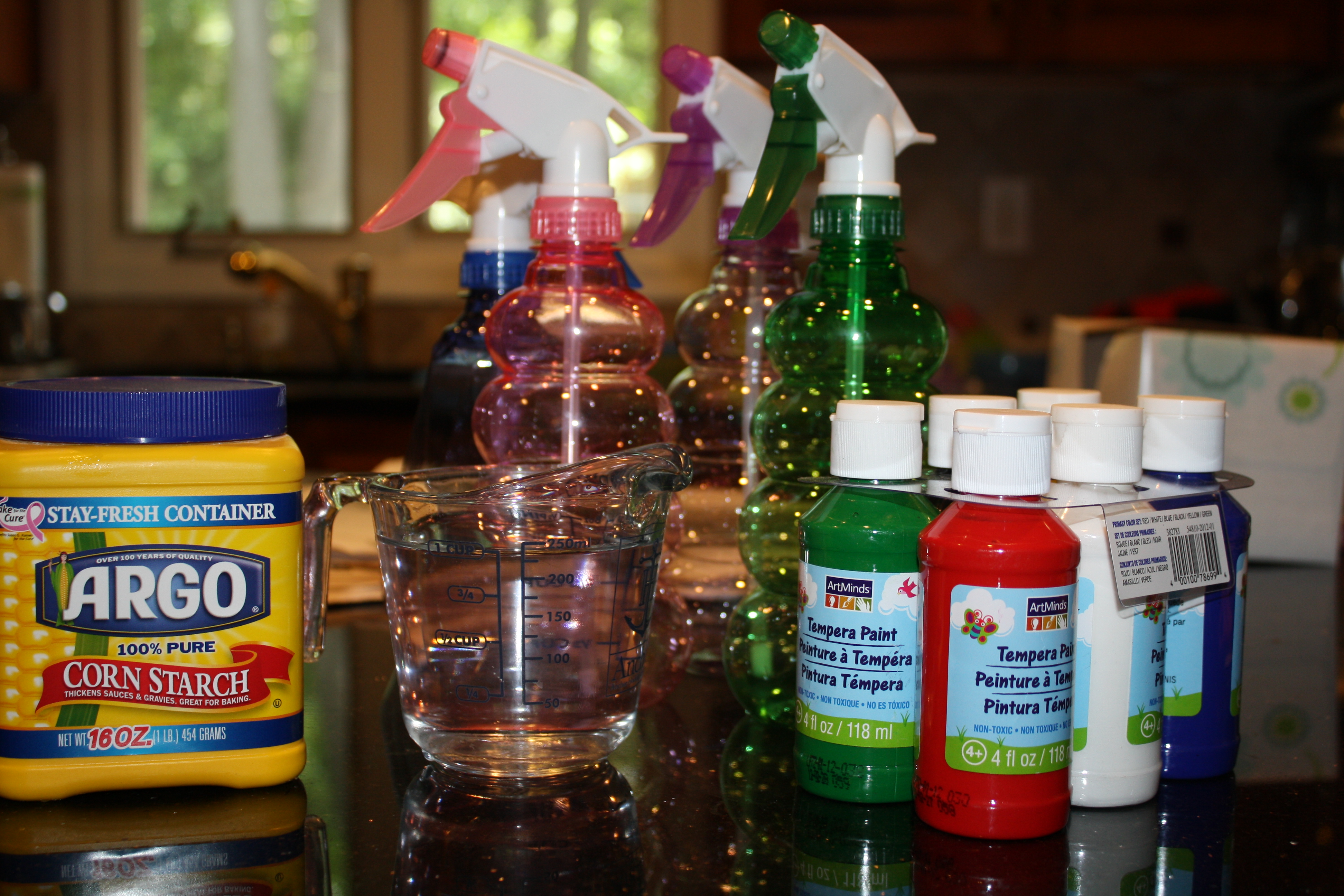 This week I went to the craft store and got some spray bottles. Looking back, I probably should have gone to the dollar store or the Christmas Tree Shops because the bottles were a little pricy at $1.49 each.