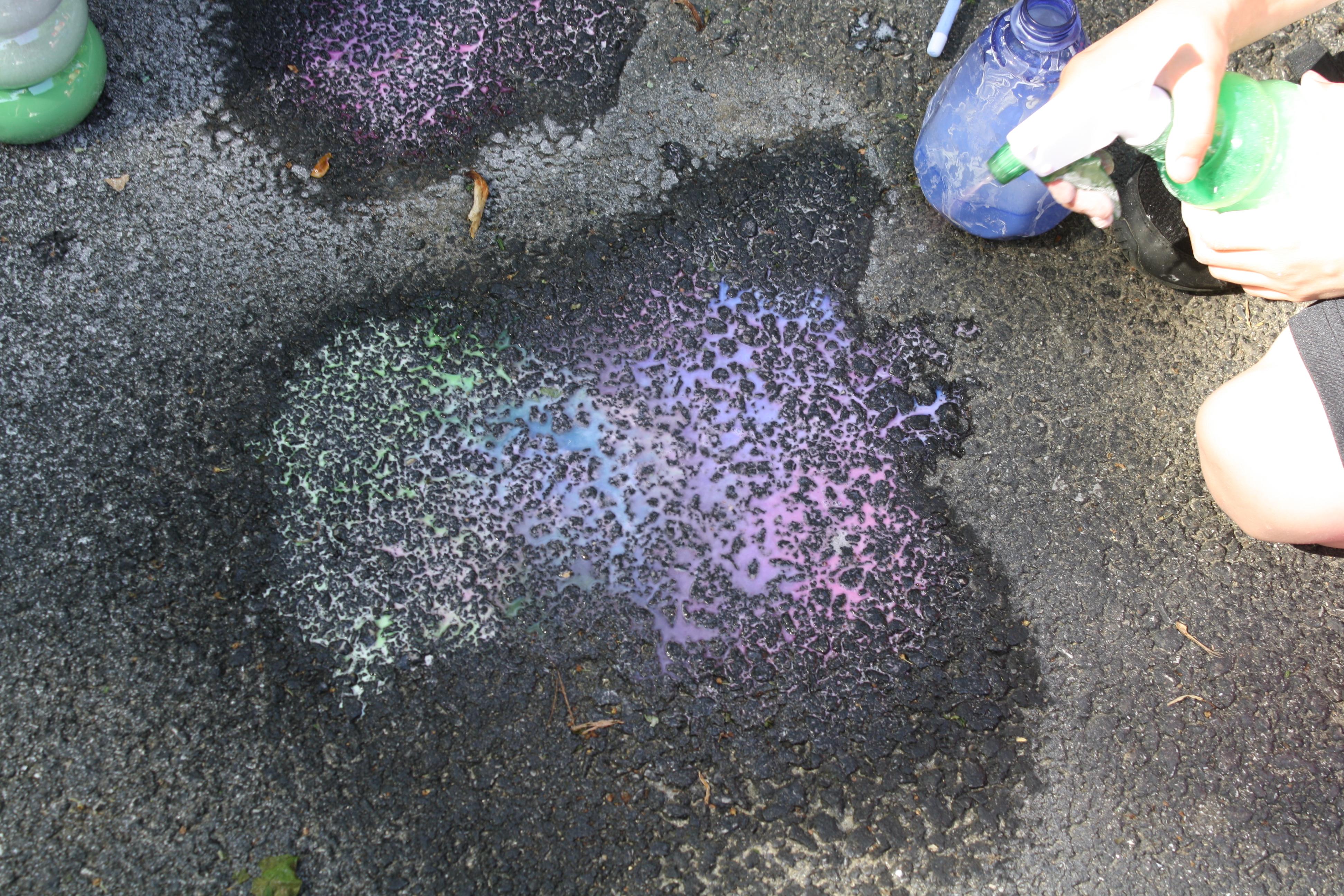 Maybe it was the kind of sprayers we used, but ours had no “stream” setting, so it kind of went out in a fan that wouldn’t make for any kind of serious rendering if a child wanted to paint a sun or a rainbow, or any kind of real picture.