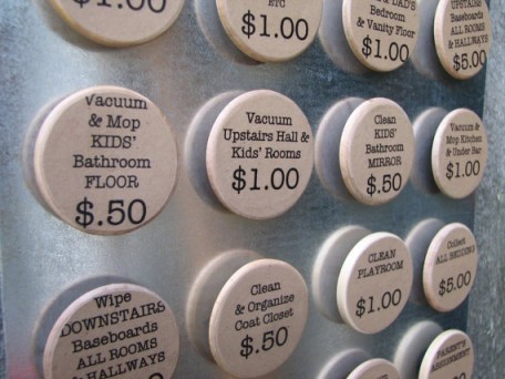 Once a chore is done, a child can put it into his or her own pocket to be compensated at a further date.
