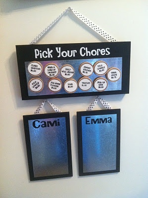This summer, I have decided that the kitchen and laundry will be my primary domains, and the kids can handle most of the rest of the work between the three of them. I looked at a number of chore systems on Pinterest. Here are a few of the photos: