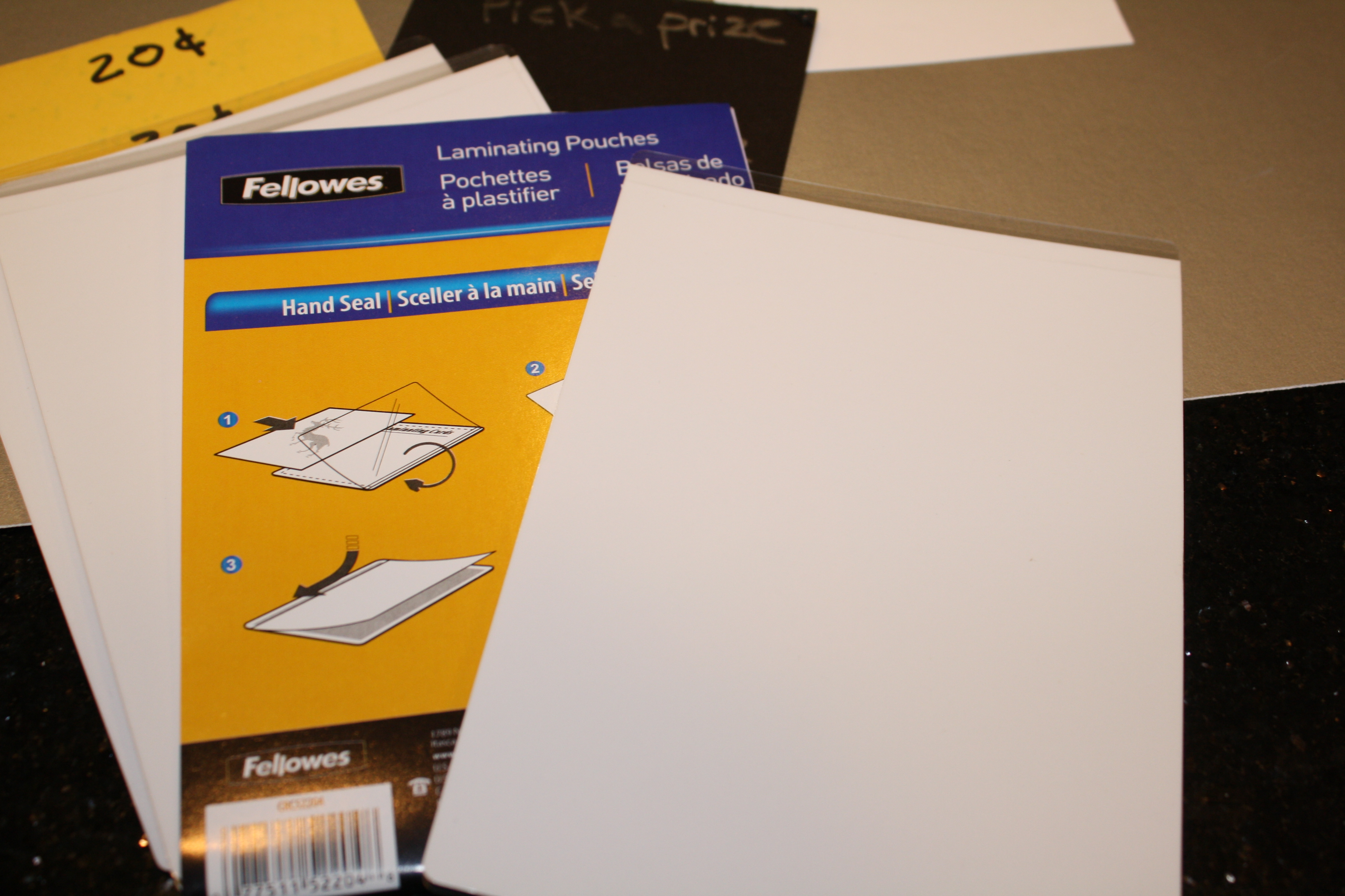 2 packets of instant laminate (the kind that doesn’t require heat)