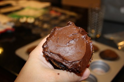 Once the cupcakes had cooled, I iced the tops with frosting, leaving two little points at the top of each circle to look like feathers.