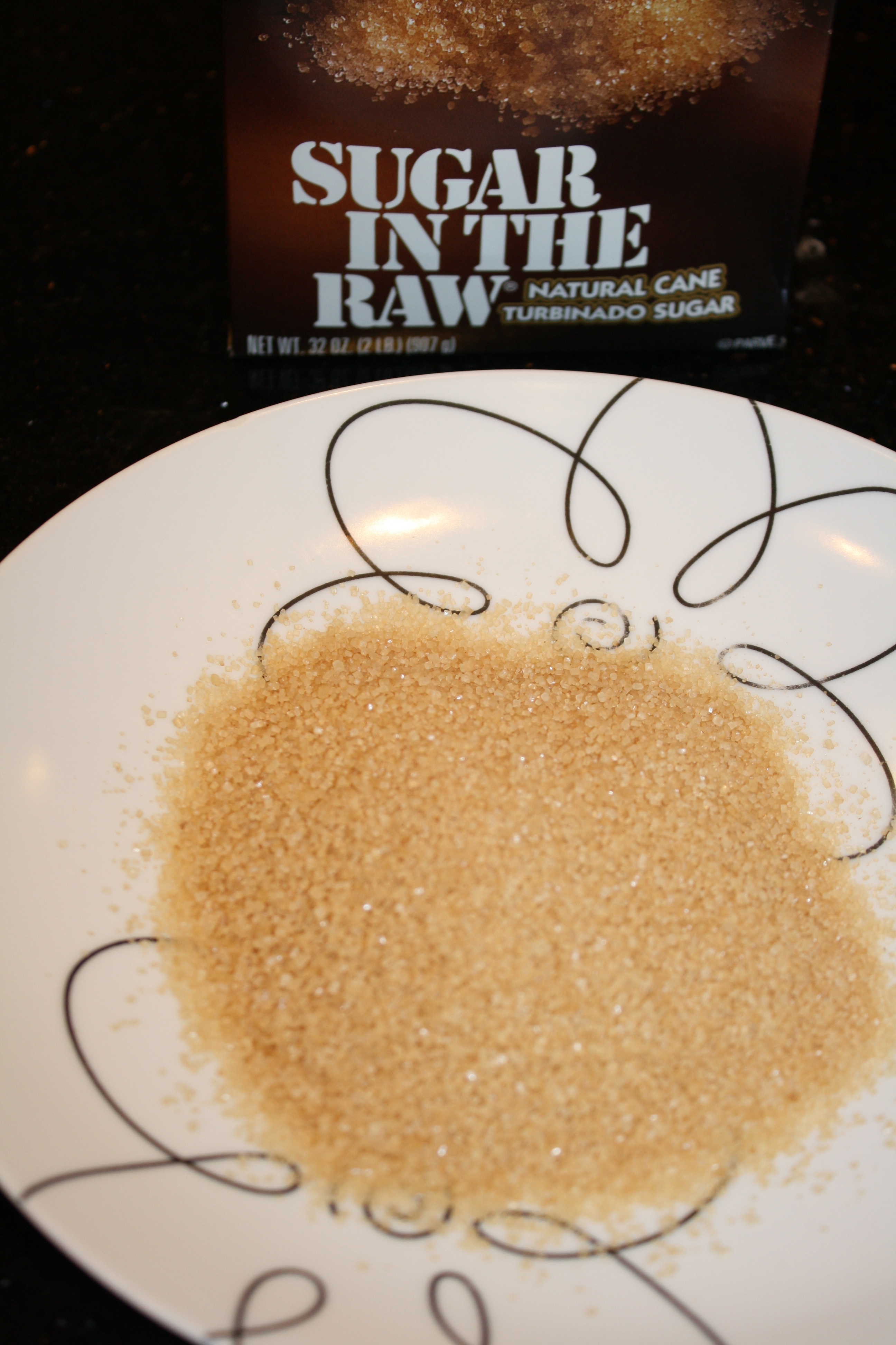 Next I poured about half a cup of Sugar in the Raw out on a plate.