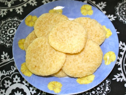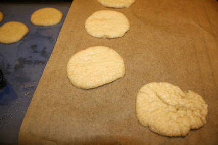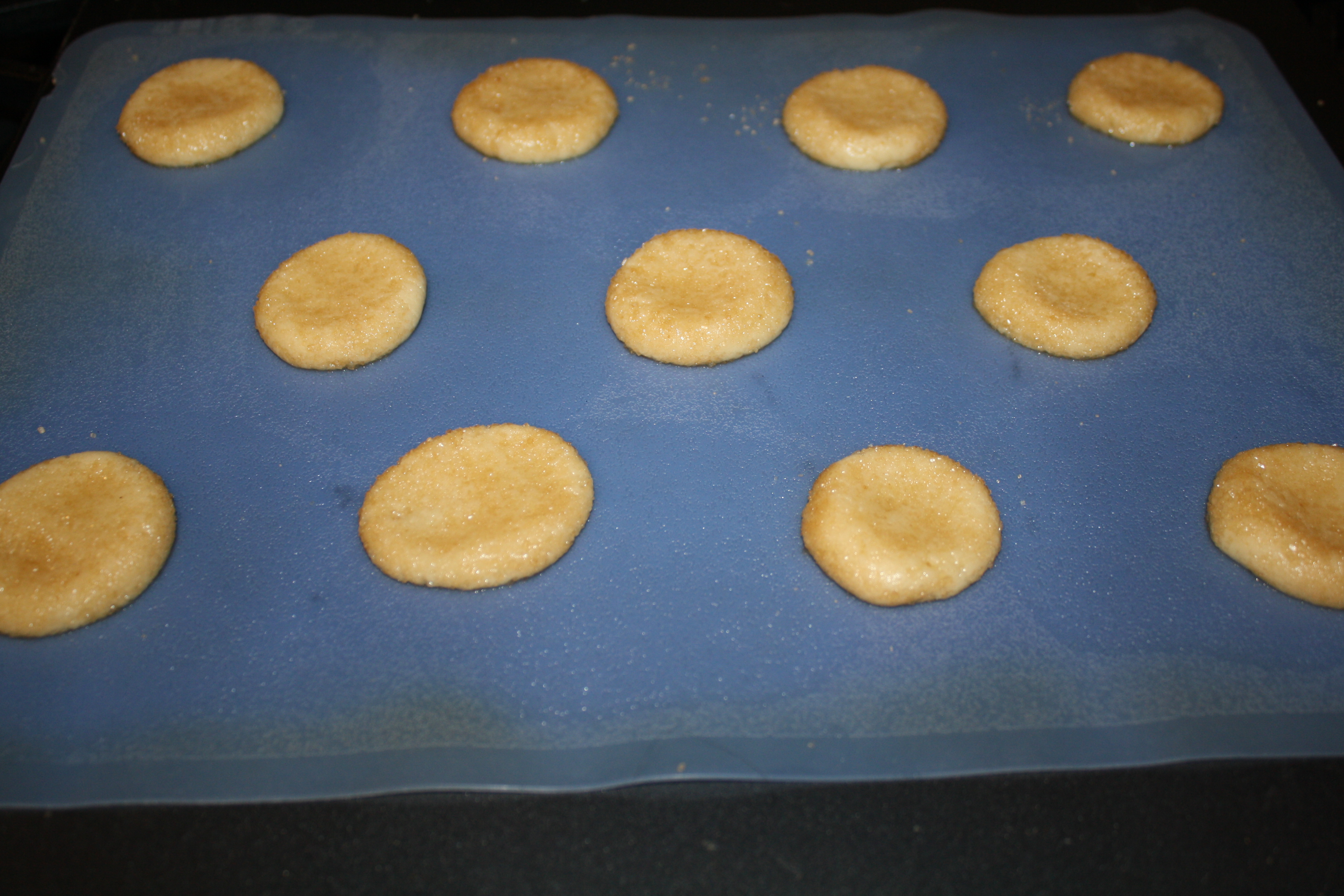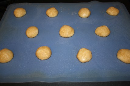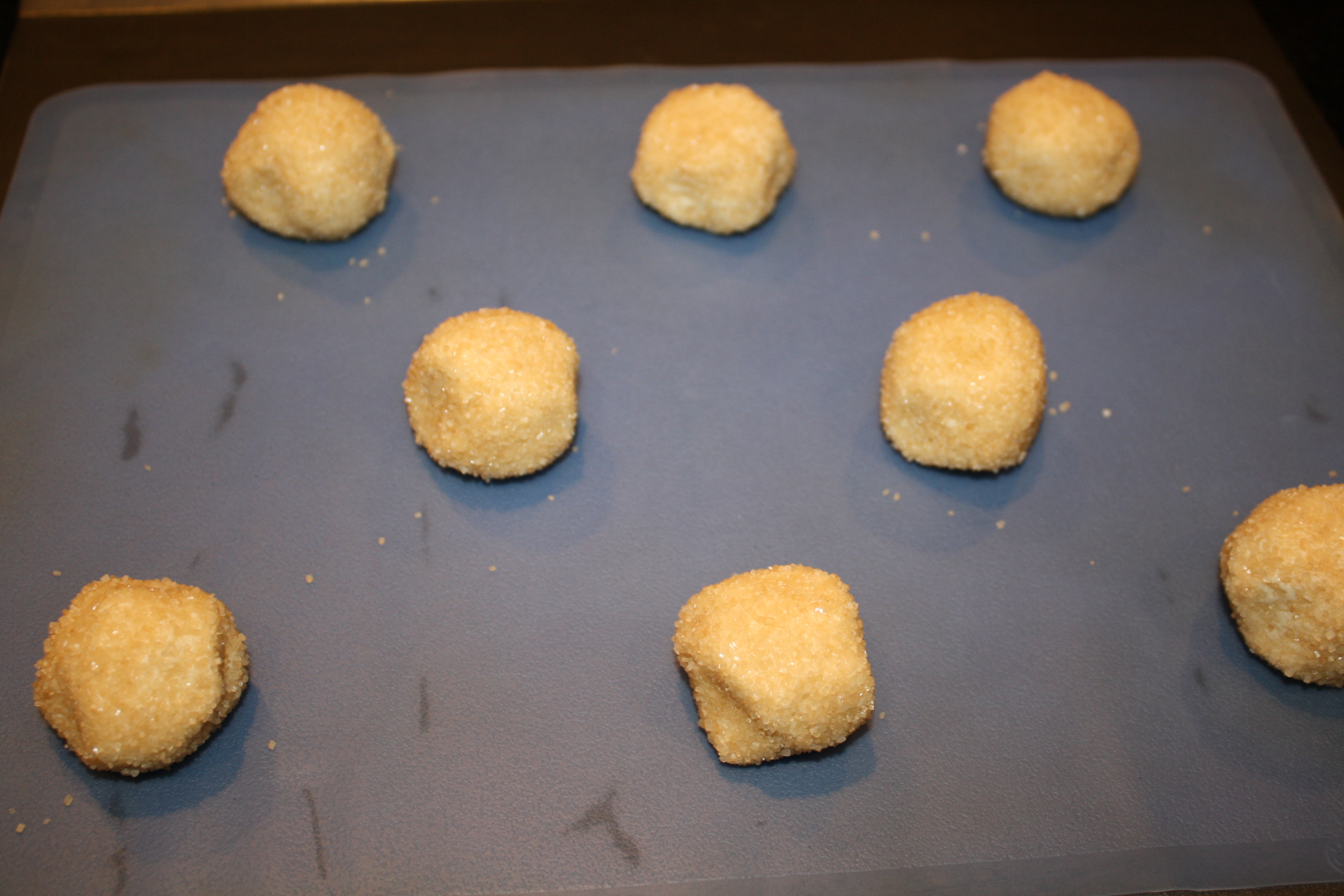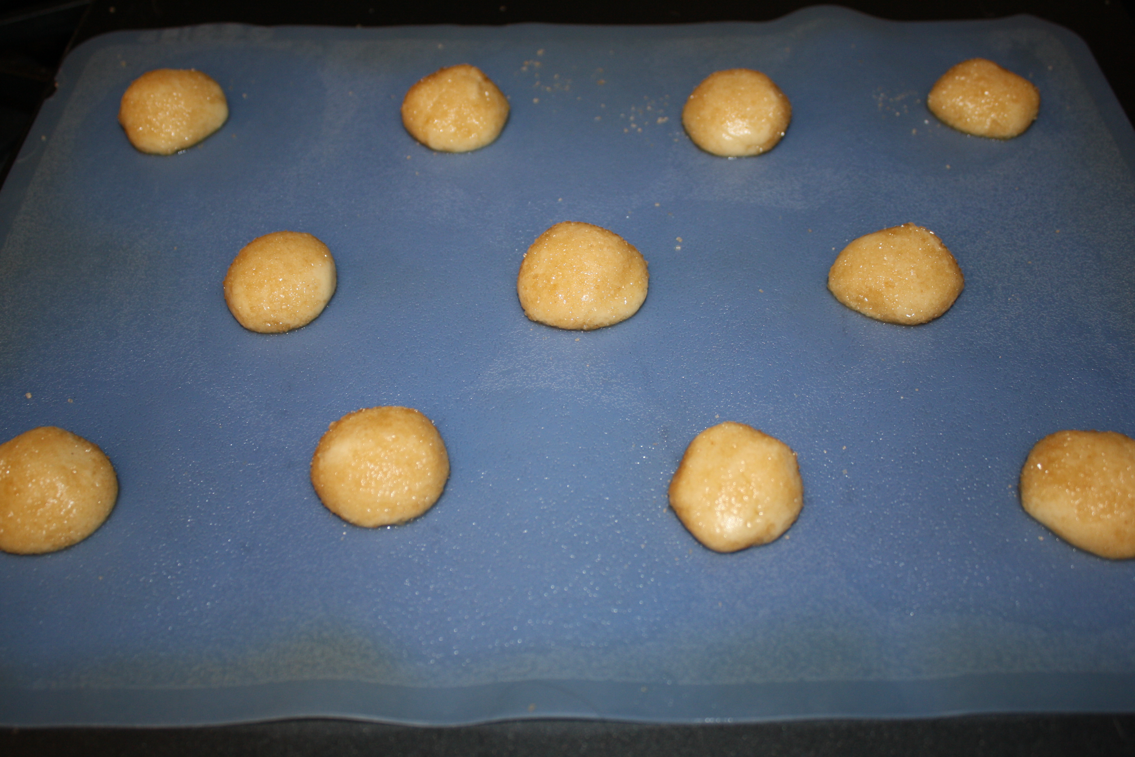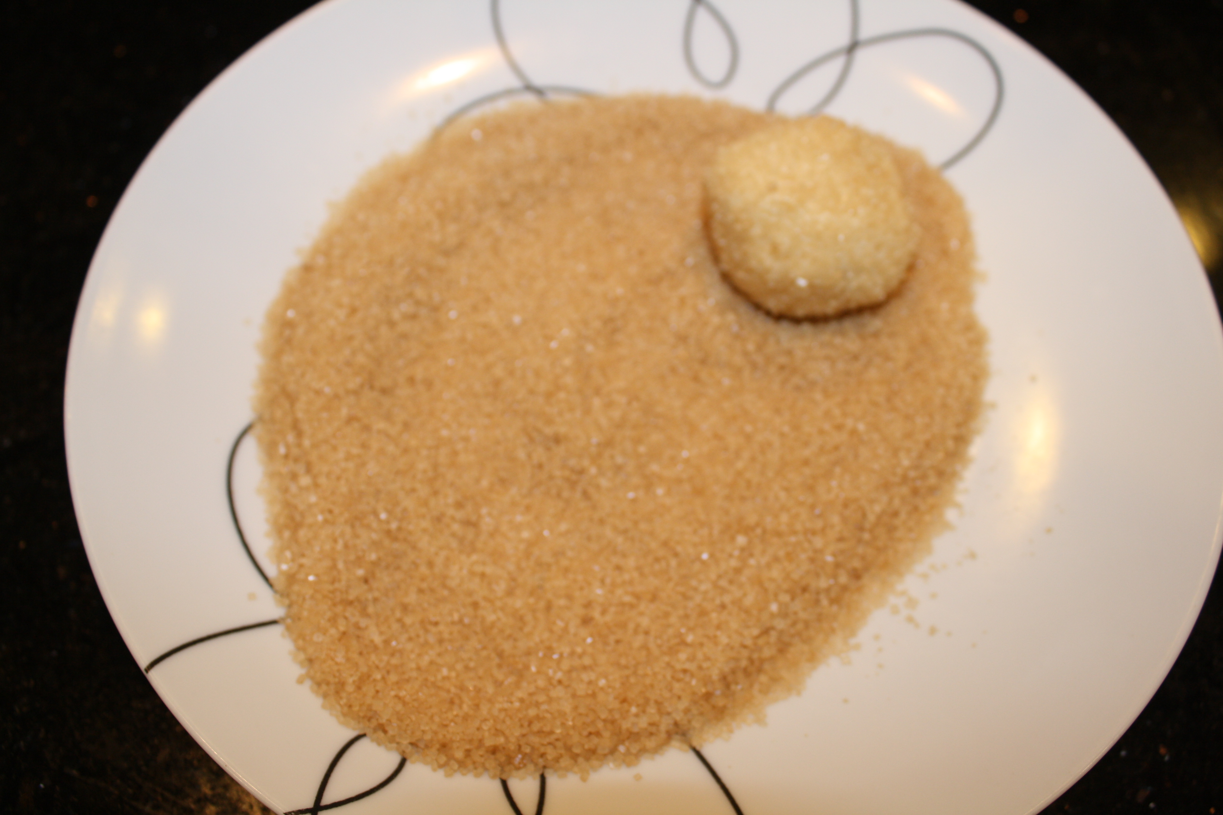 I used a tablespoon to scoop out the dough and then rolled it into balls which were then rolled in the sugar.