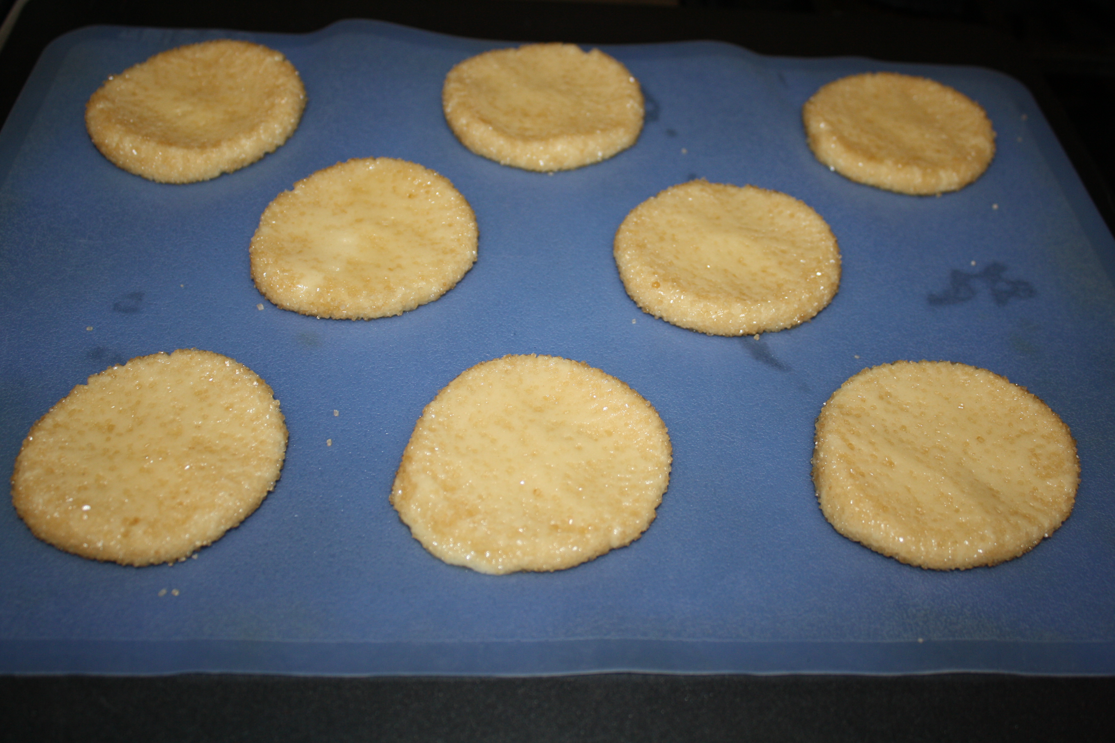 The second set, I baked a little bit longer (about 2 minutes) and they turned out a little better, but there was still a bit of oily residue on the baking sheet.