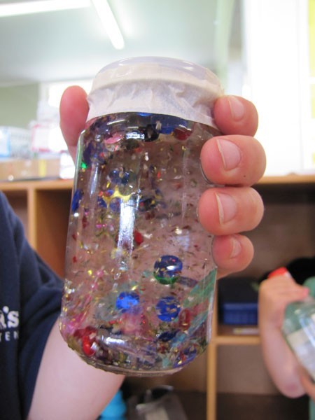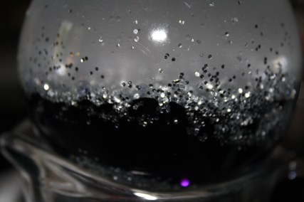So I started over. My original idea, when I thought about doing this project, was to use dishwashing liquid because it’s nice and thick, so the glitter would fall slowly. As it turned out, I had some Palmolive baby dish soap under the sink, and that turned out to work really well because it doesn’t produce a lot of bubbles like regular dish soap might.