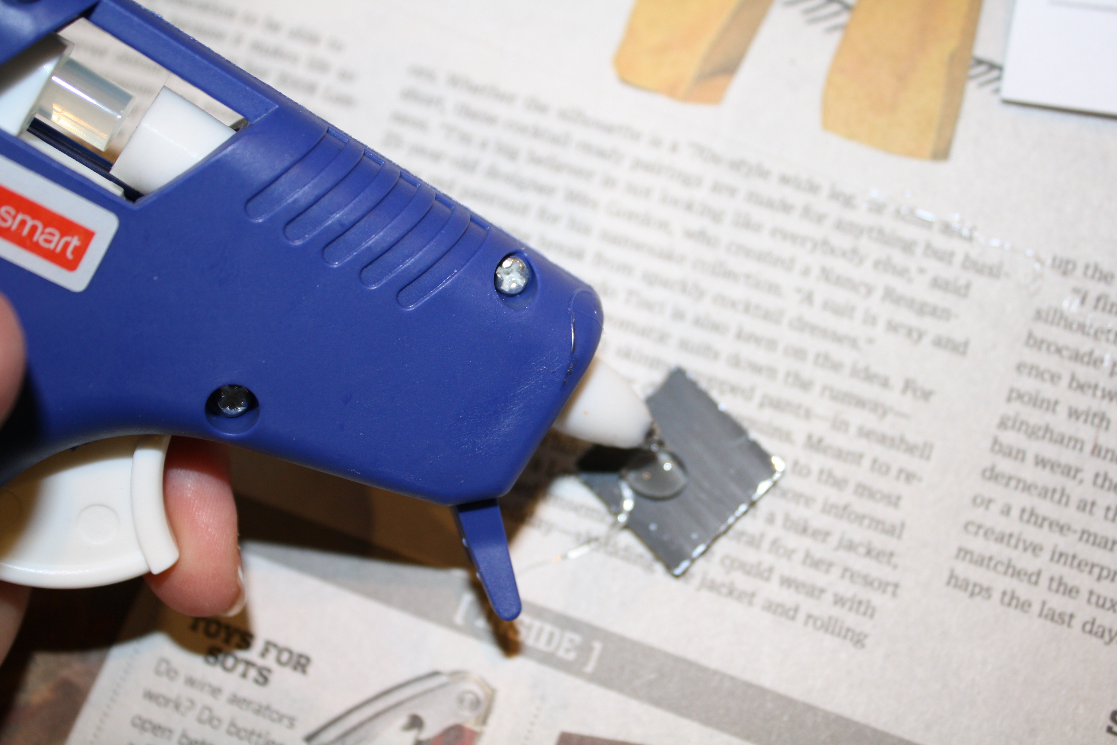 Then I applied hot glue to the backs of the tiles…