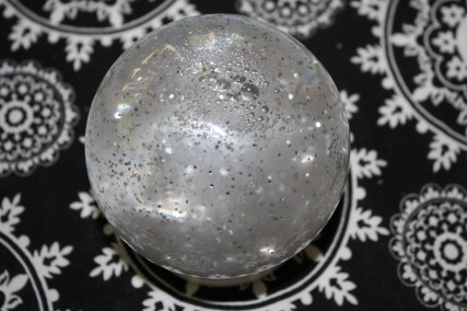 For a while now, I have been thinking about making a crystal ball. Not for my stint at the wizard camp, but I thought it would be a fun craft for the bunch of Harry Potter fans we have over here. I looked on the boards, and there weren’t any ideas for crystal balls, but there were quite a few for snow globes. Some of the photos on Pinterest look like this:
