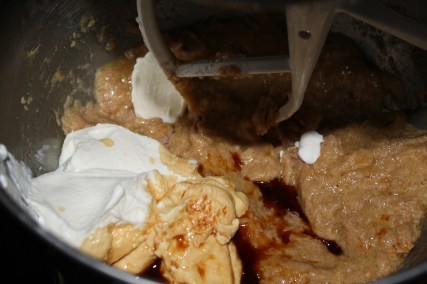 First I creamed the butter, sugar, salt and cinnamon, just like Lil’ Luna told me to.