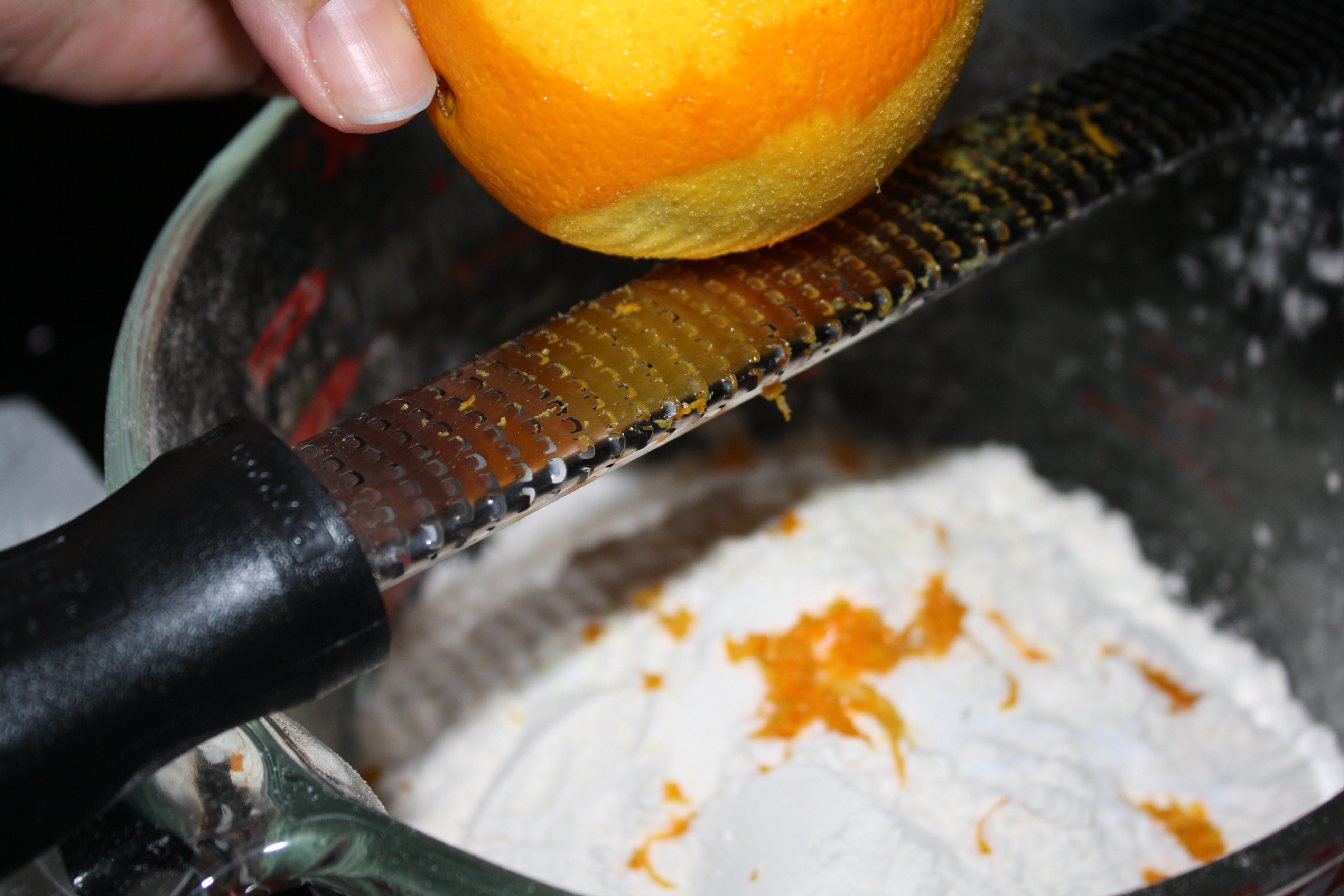 The instructions say to add the orange zest after the batter is combined, but I added it to the dry ingredients beforehand, using a microplane grater, and then whisked it for more even distribution.