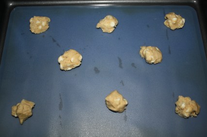 and baked for eight minutes. Eight minutes was just the right amount of time, but I didn’t like the way the cookies looked, all lumpy like this: