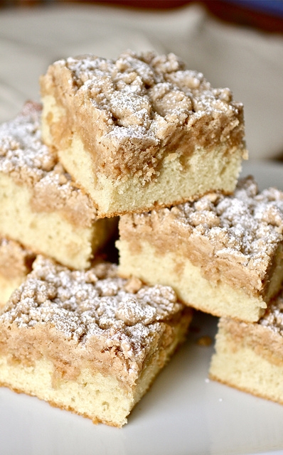 I’m still in that cinnamon state of mind, which has kept me looking for different cake recipes. Recently, I came across one for cinnamon crumb cake,on the boards, and it looked pretty yummy. But I wonder, is “New York Style” like New York City, or is it more of the state as a whole, because, the two can be very different. In any case, the photo on Pinterest looks like this: