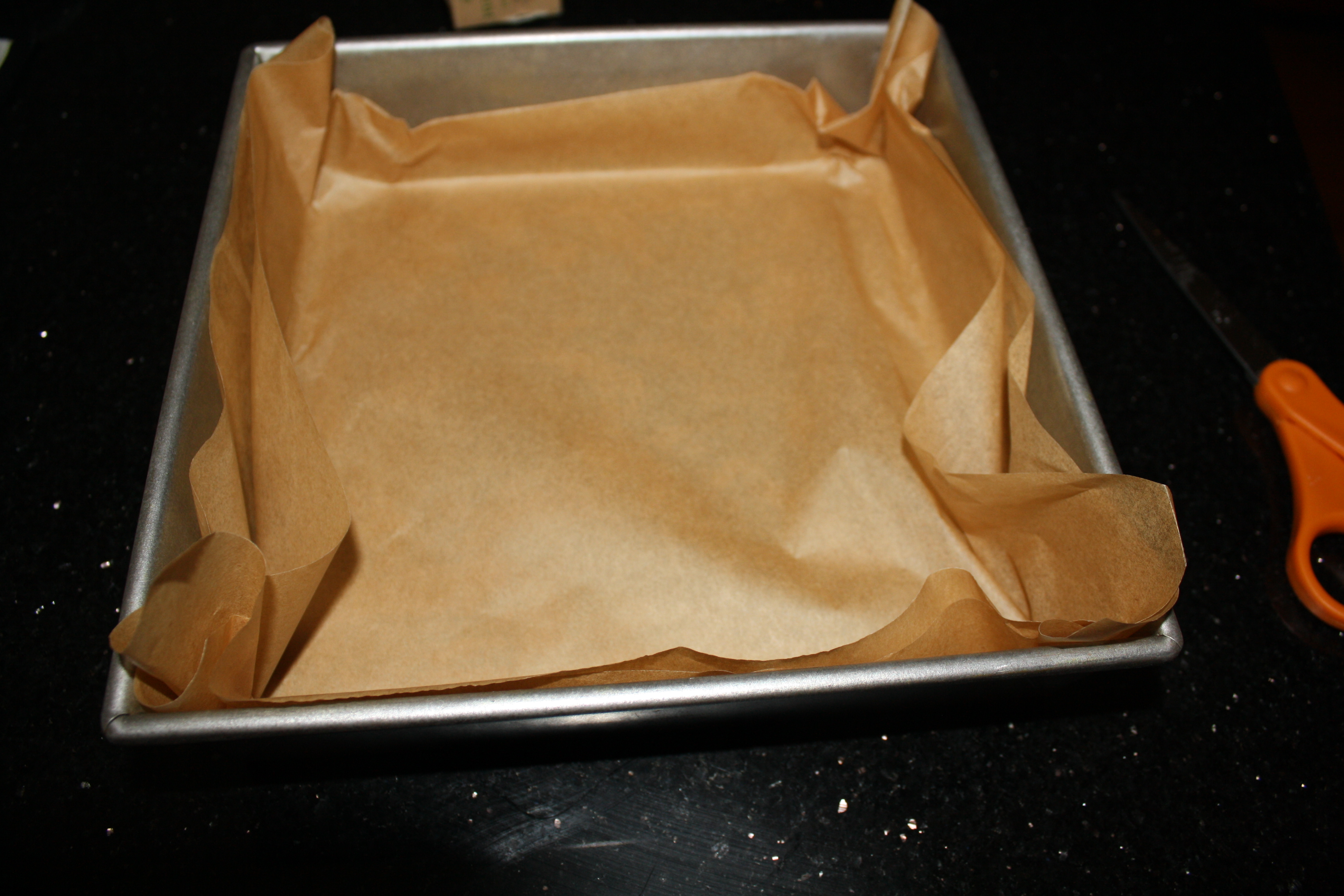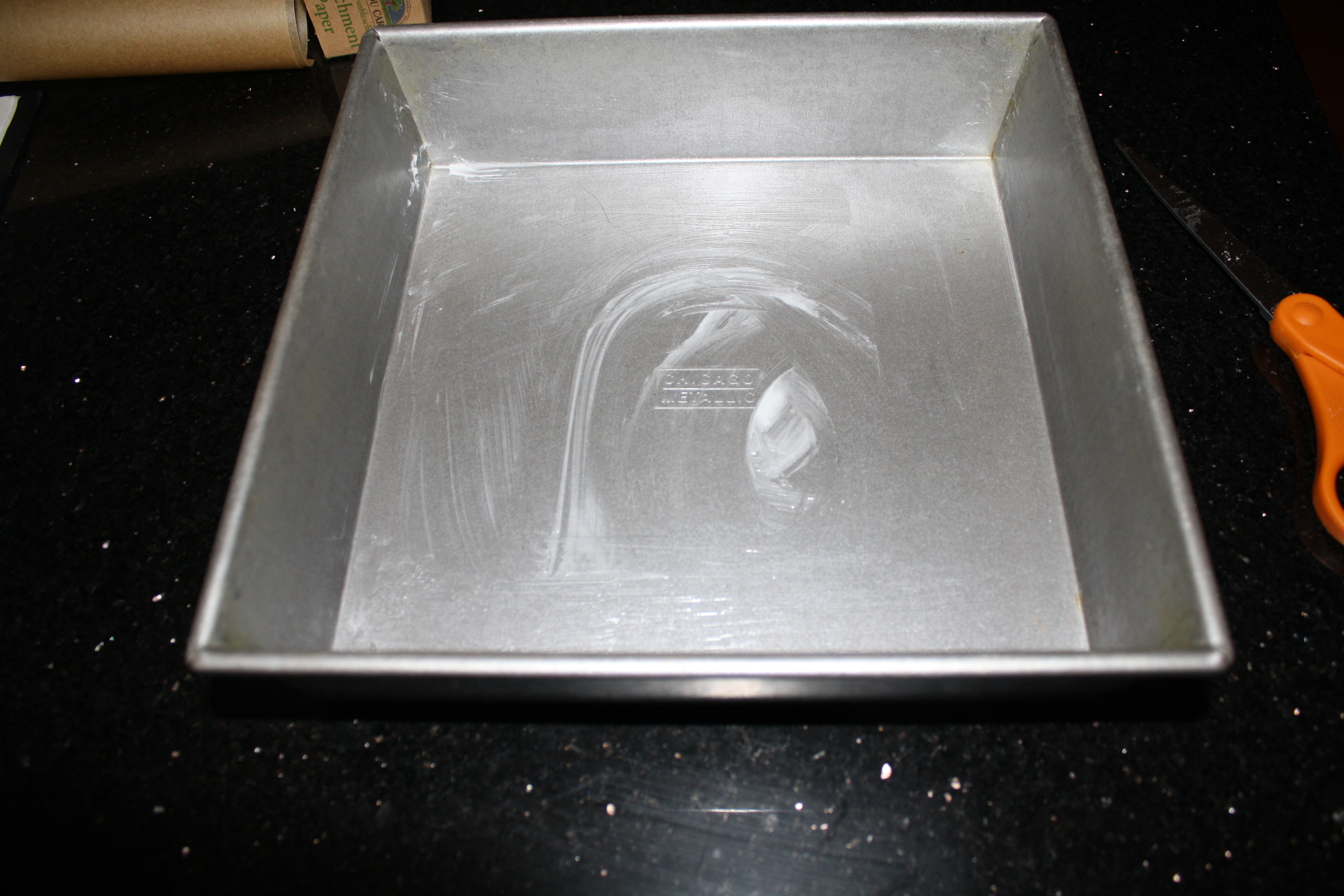 First, I got the parchment ready in the pan. I’d never used double parchment before. It was a little awkward, but once the cake was done, it turned out to be a good thing.