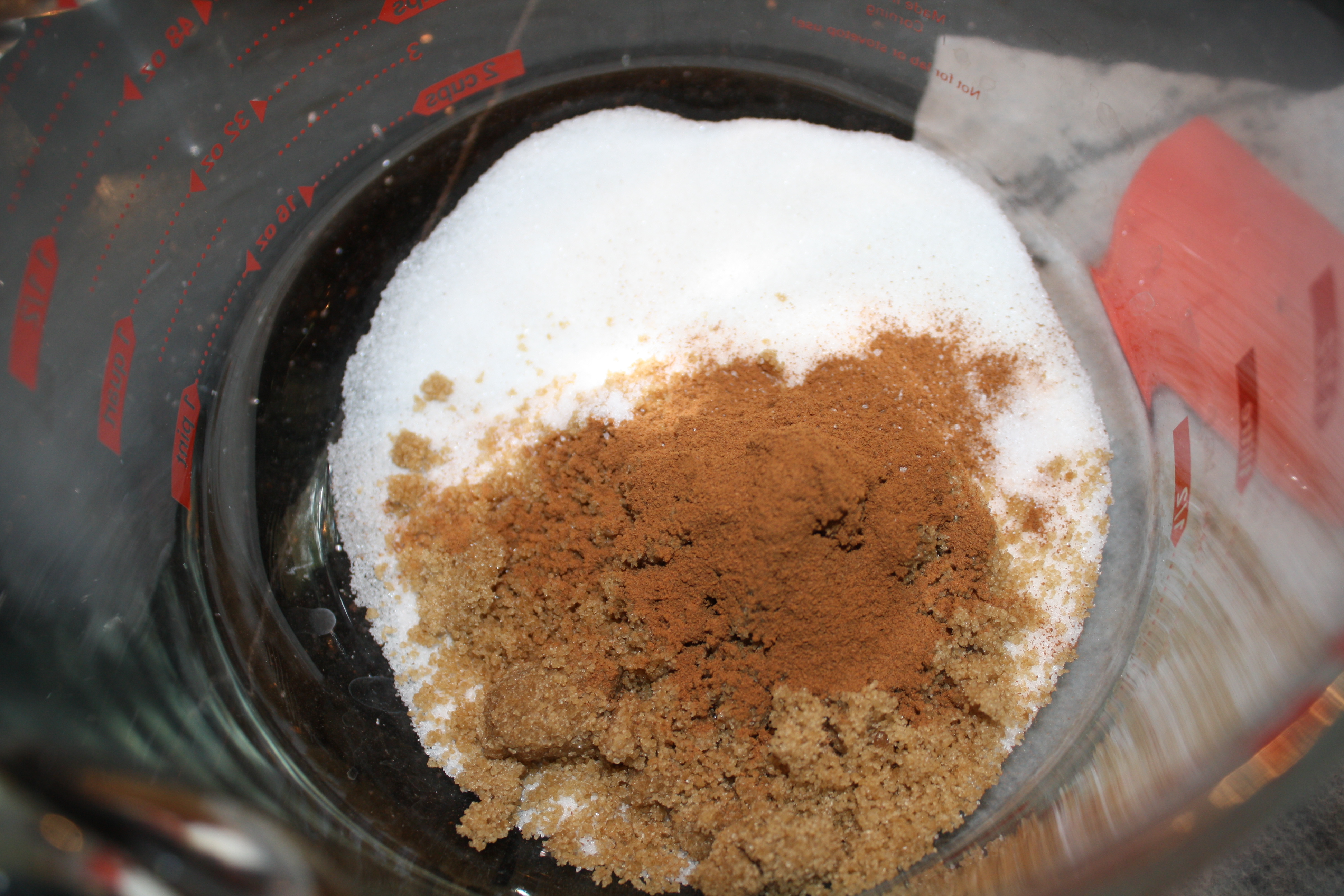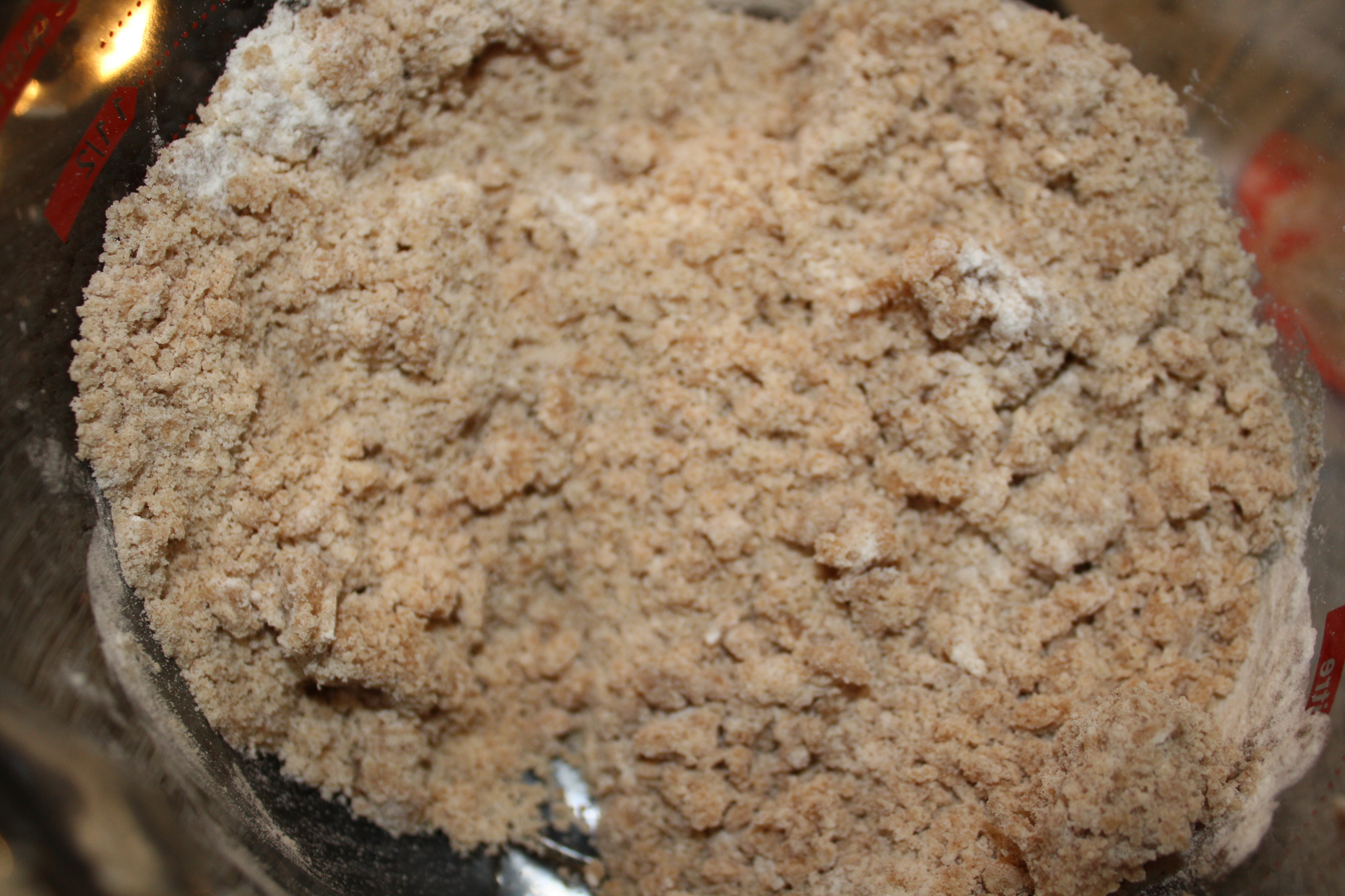 The egg white, vanilla, and buttermilk were added then, and while they were mixing, I put together the crumb topping ingredients in a separate bowl.