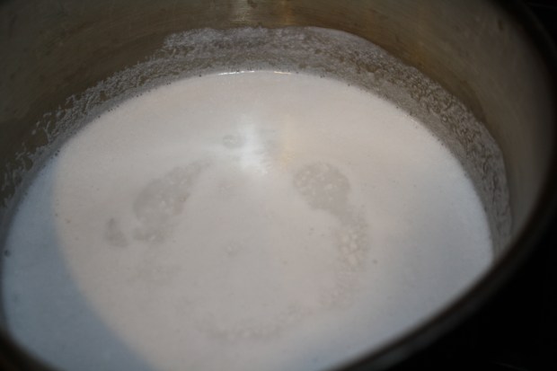 First I combined the water, coconut milk, sugar and salt and heated them until the sugar had dissolved.