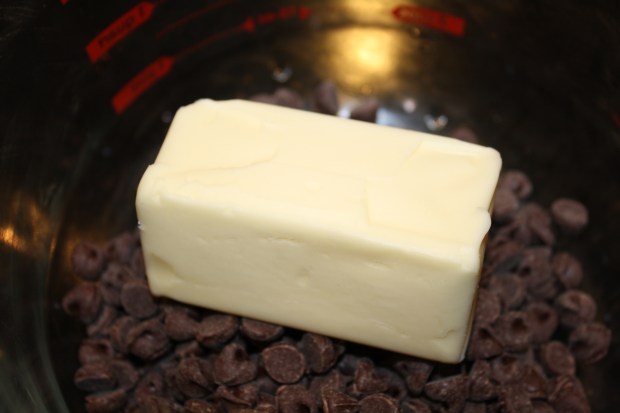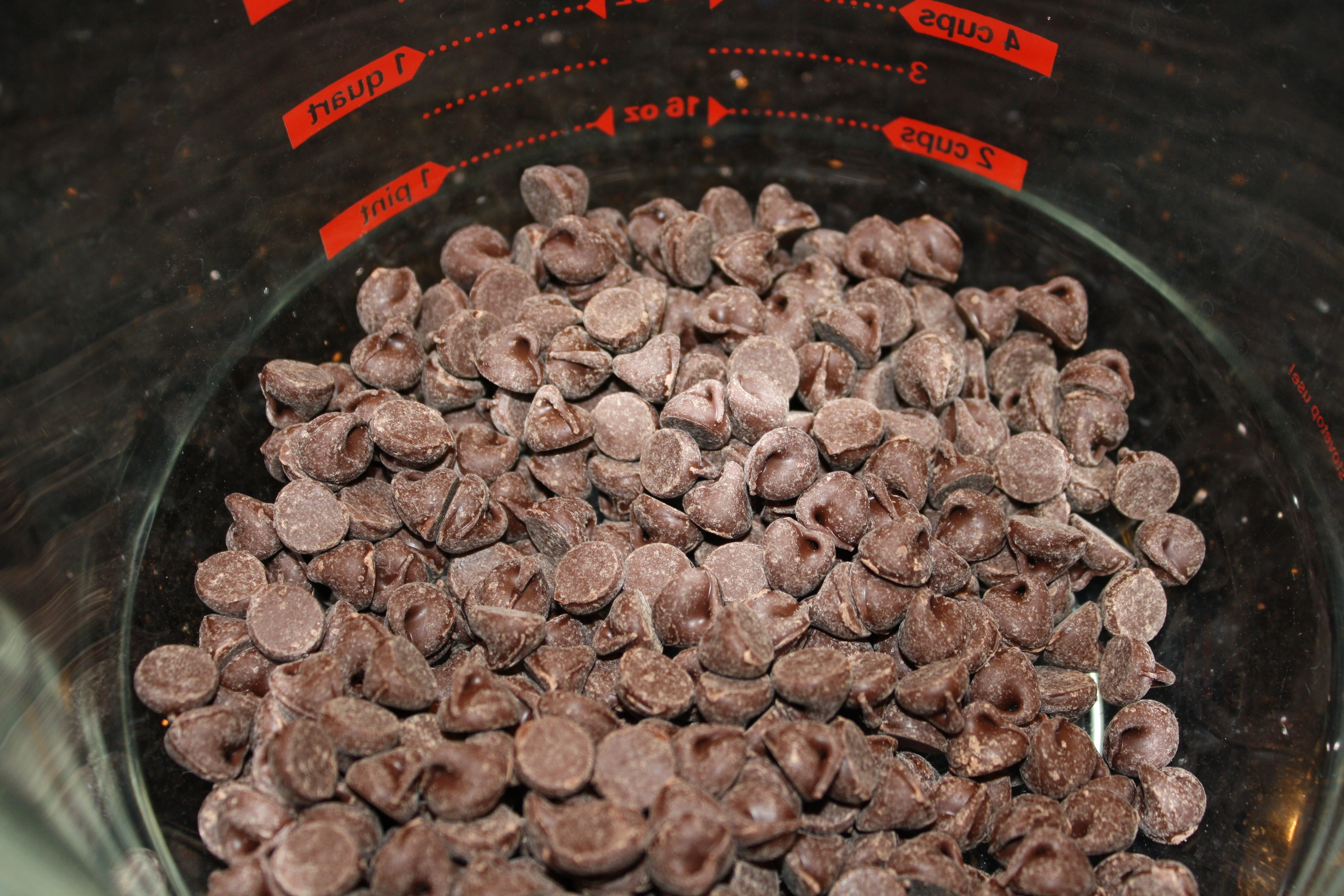 This is another recipe that’s so easy to make, you will wonder why you haven’t been making it. First I put the chocolate chips in a bowl.