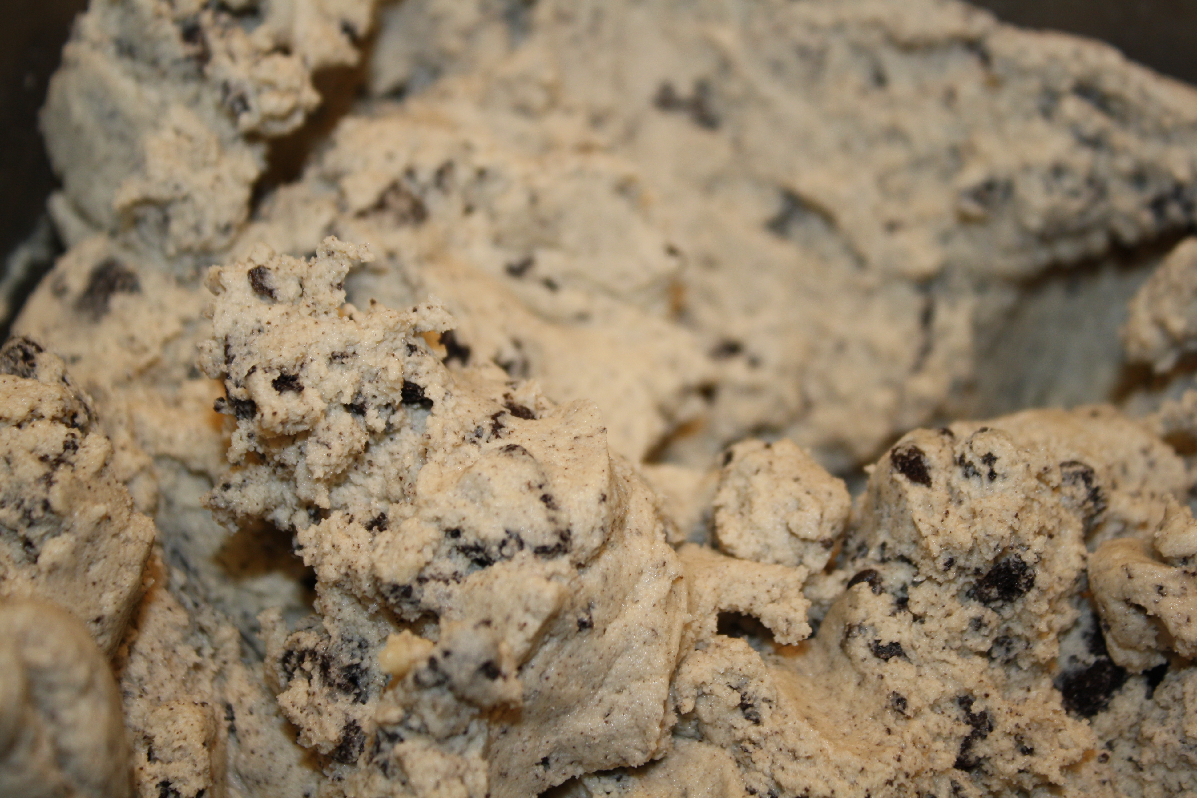 I wasn’t sure about putting in the Oreos, because I worried that by putting them in whole, they wouldn’t get evenly distributed, but my fears proved to be unfounded. Adding the cookies one at a time, they broke apart easily and dispersed uniformly.
