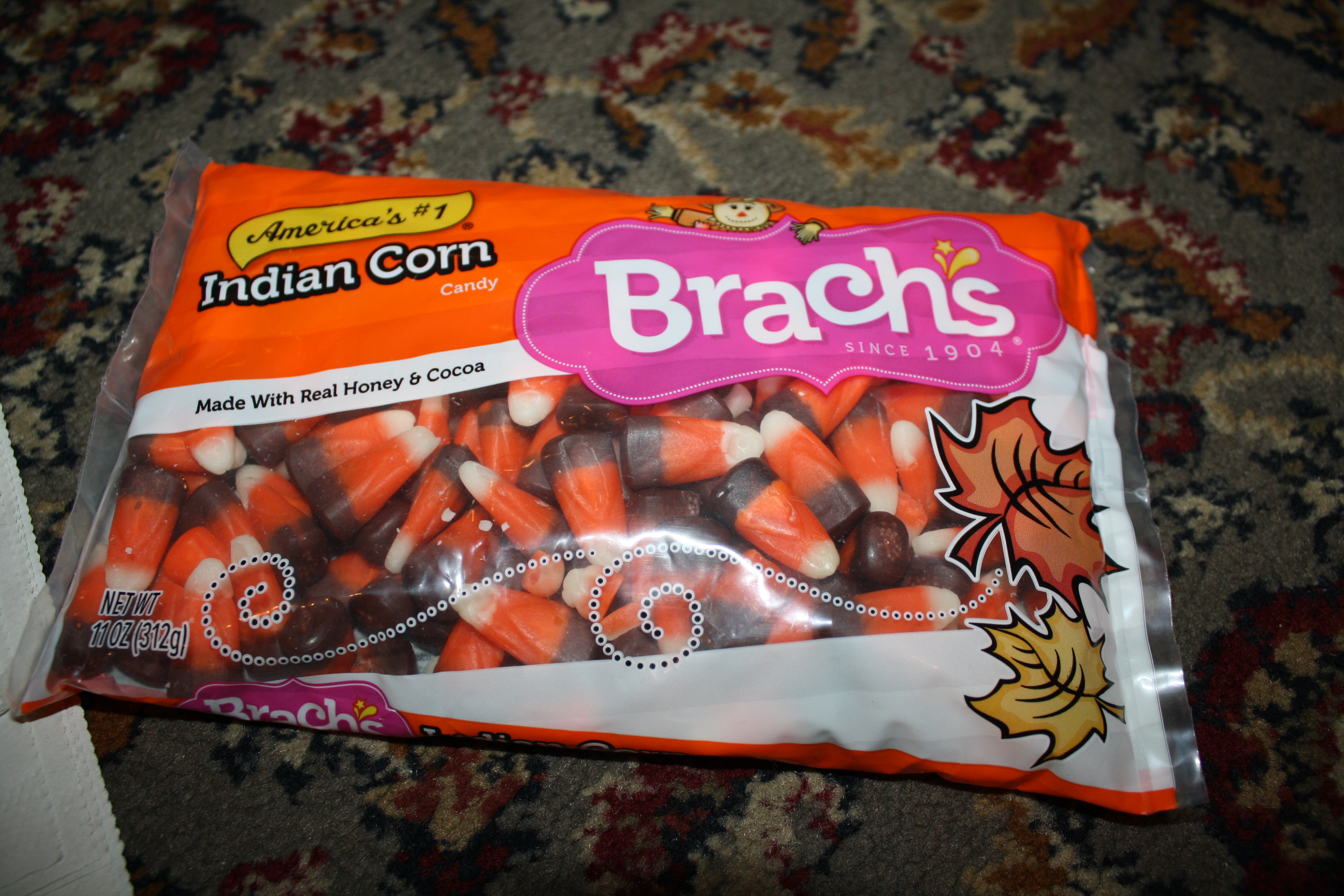 A few weeks ago, I made a candy corn wreath, but I kind of jumped the gun a little by using the only candy corn I could find, which wasn’t the kind I wanted. This week I was in a grocery store and happened to come across the kind that I did want, which was indian corn, so I decided to try again. My original wreath looked like this: