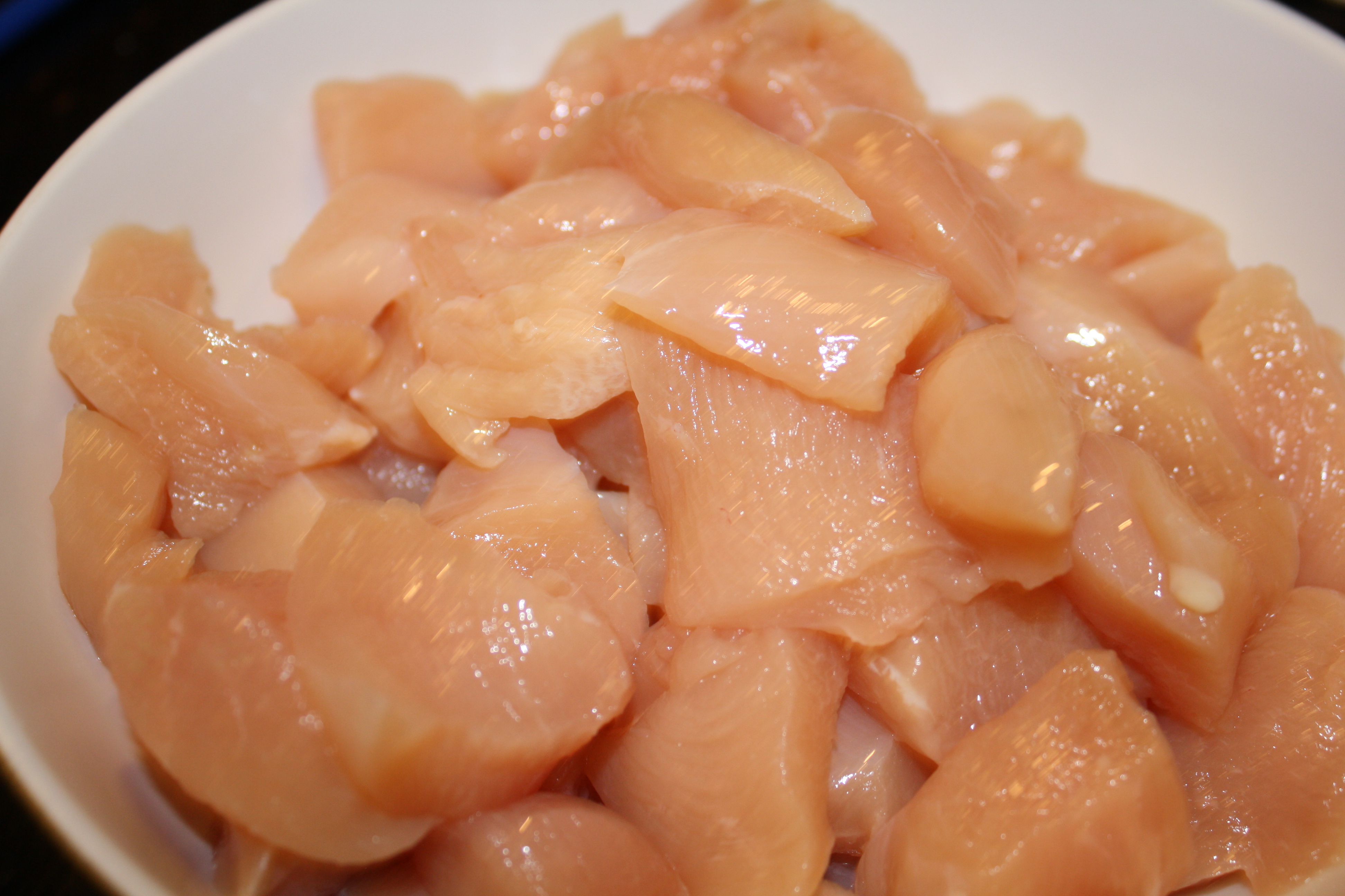 The original recipe didn’t call for a lot of chicken, but I was feeding five, so I cut up three whole boneless breasts and multiplied the other ingredients accordingly.