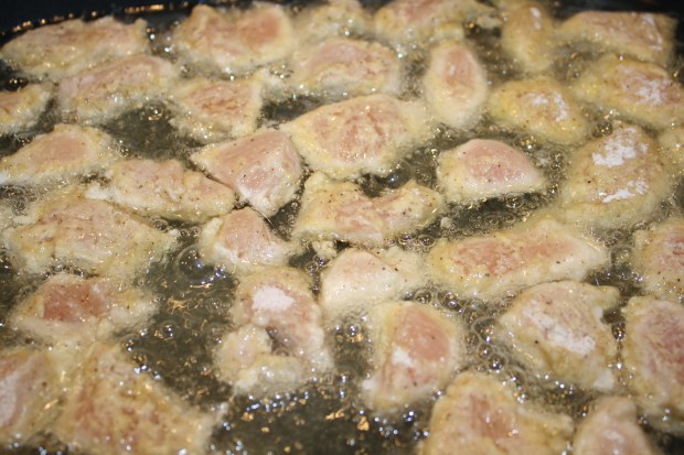 Then the coated nuggets went into the oil and cooked about five minutes on each side.