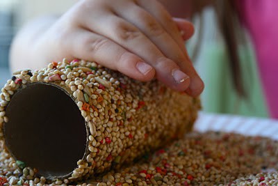 This weekend I was looking for a fun project for my Sunday school class, something simple that would illustrate the concept of caring for nature. I came across this great project for kids, creating a bird feeder using a cardboard tube, peanut butter and bird seed. The photo on Pinterest looks like this:
