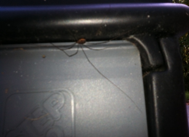 We live near some woods, so every time I go to check the mail, I get a slight case of arachnophobia. I don’t know if they are living in there, or they use it as a super highway, but I have seen spiders of all shapes, colors and sizes in there. Some have even had hairier legs than this chick: