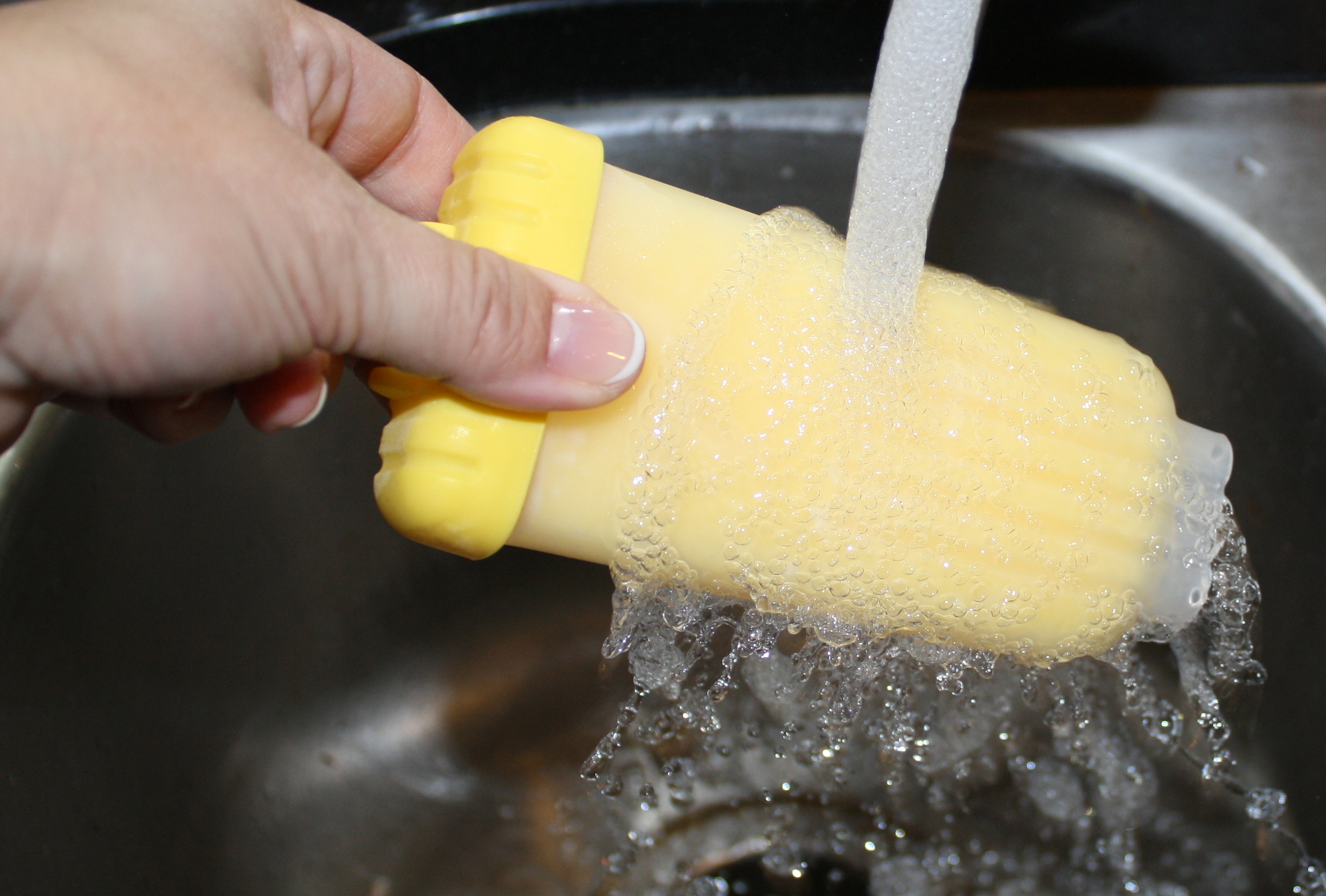 The next day, we took the pops out of the freezer and ran the molds under hot water to remove them.