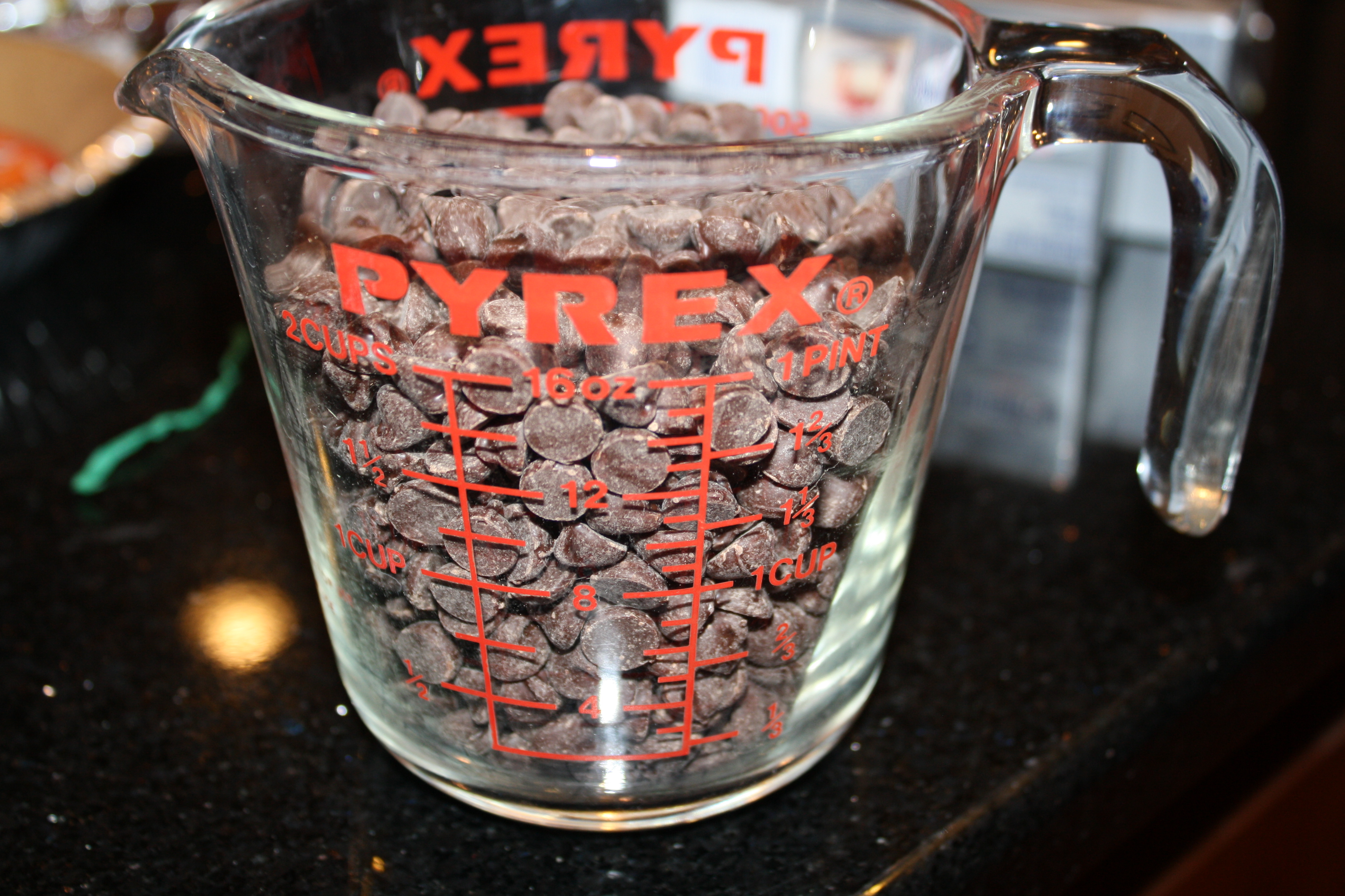That left me to deal with a pretty messy mixing bowl, as the chocolate chips had hardened to the metal as they cooled.