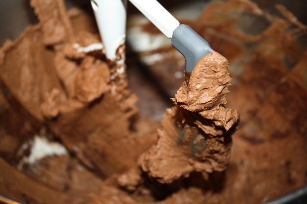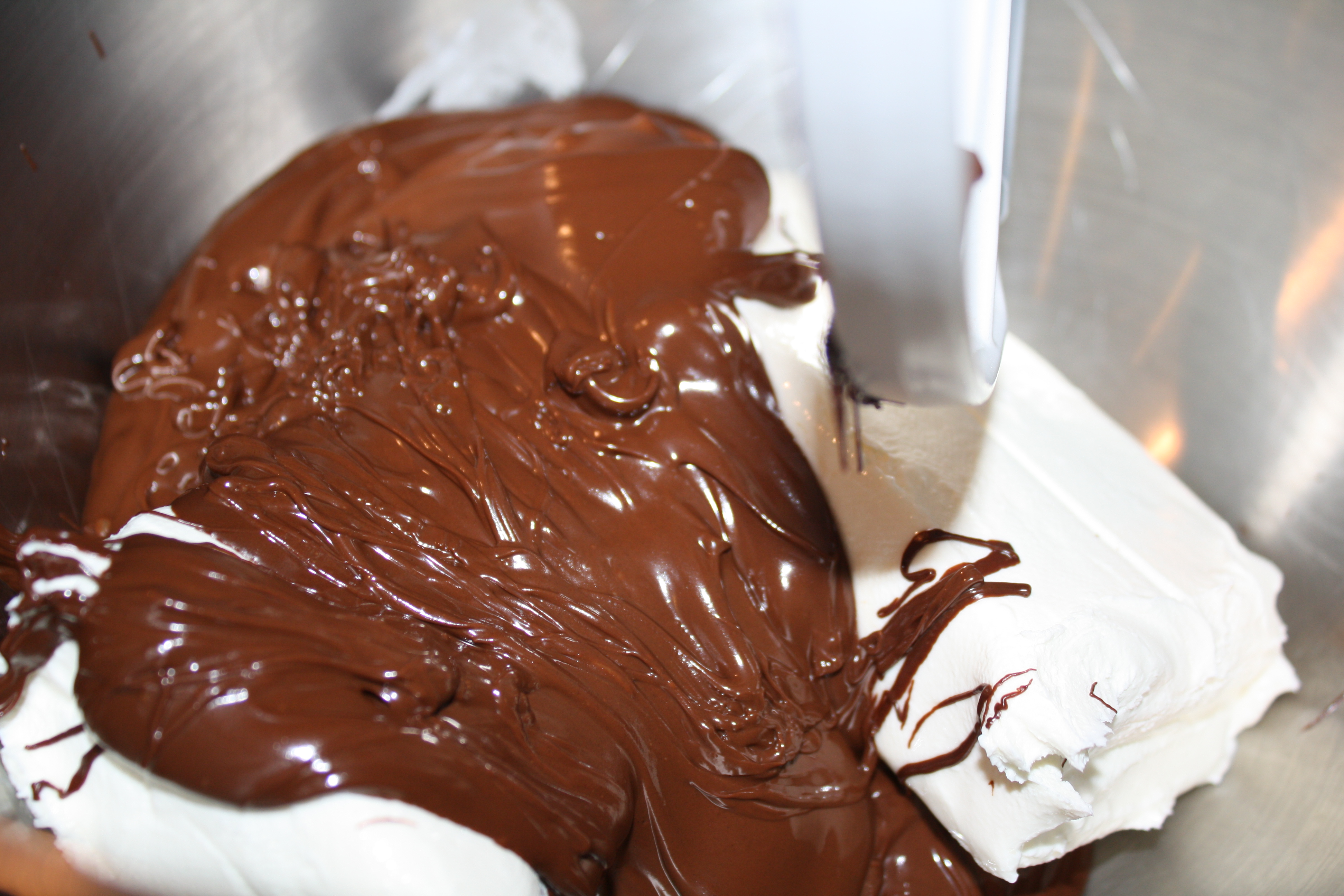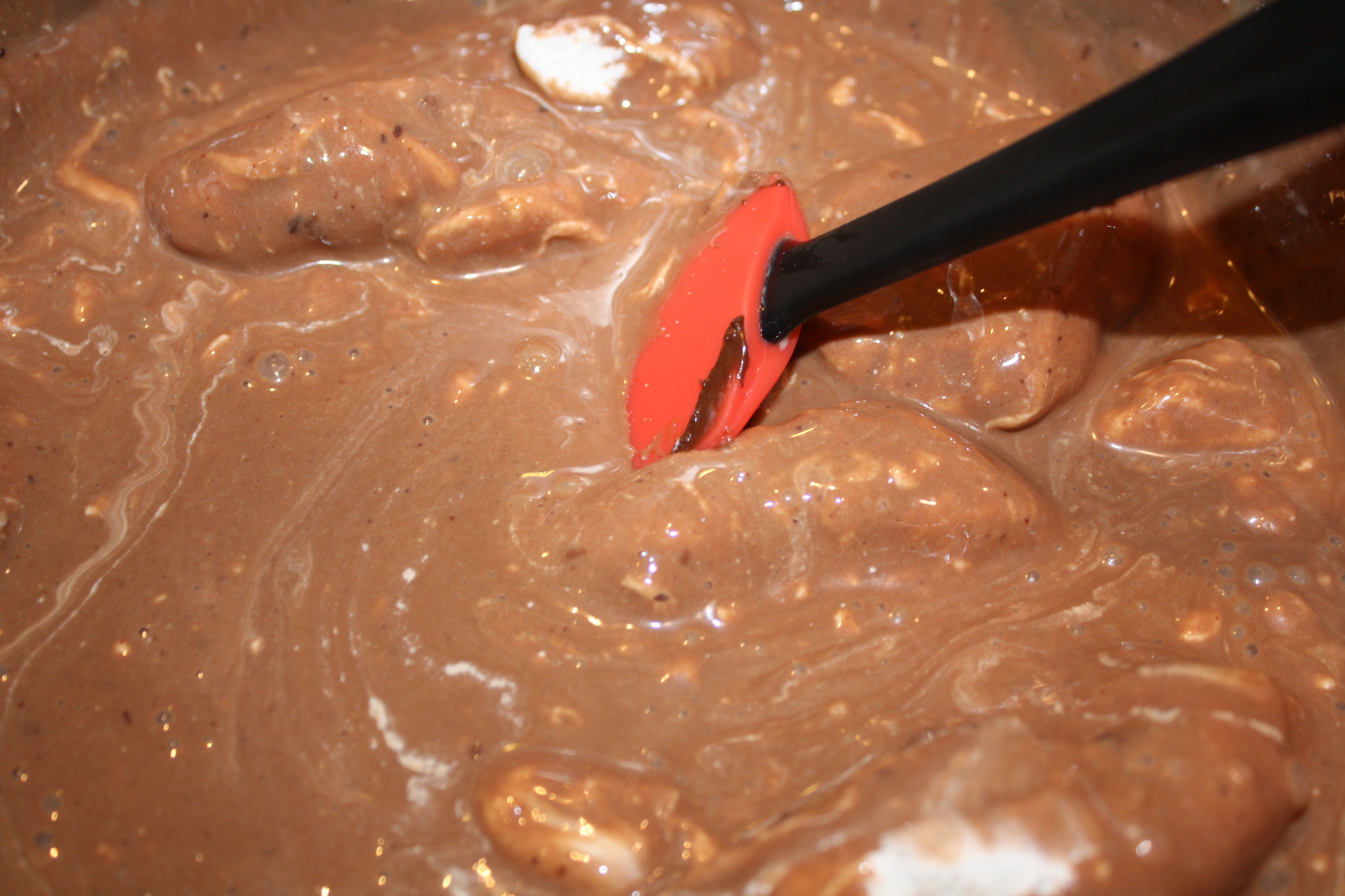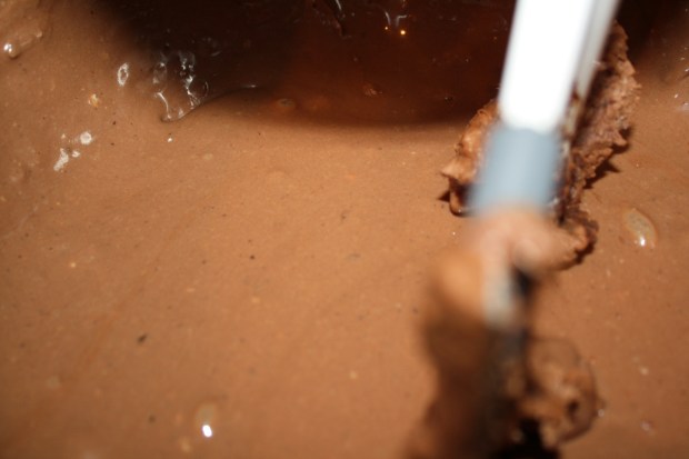 After the gelatin had cooled a bit, it was added to the chocolate mixture. I also gradually added the condensed milk here.