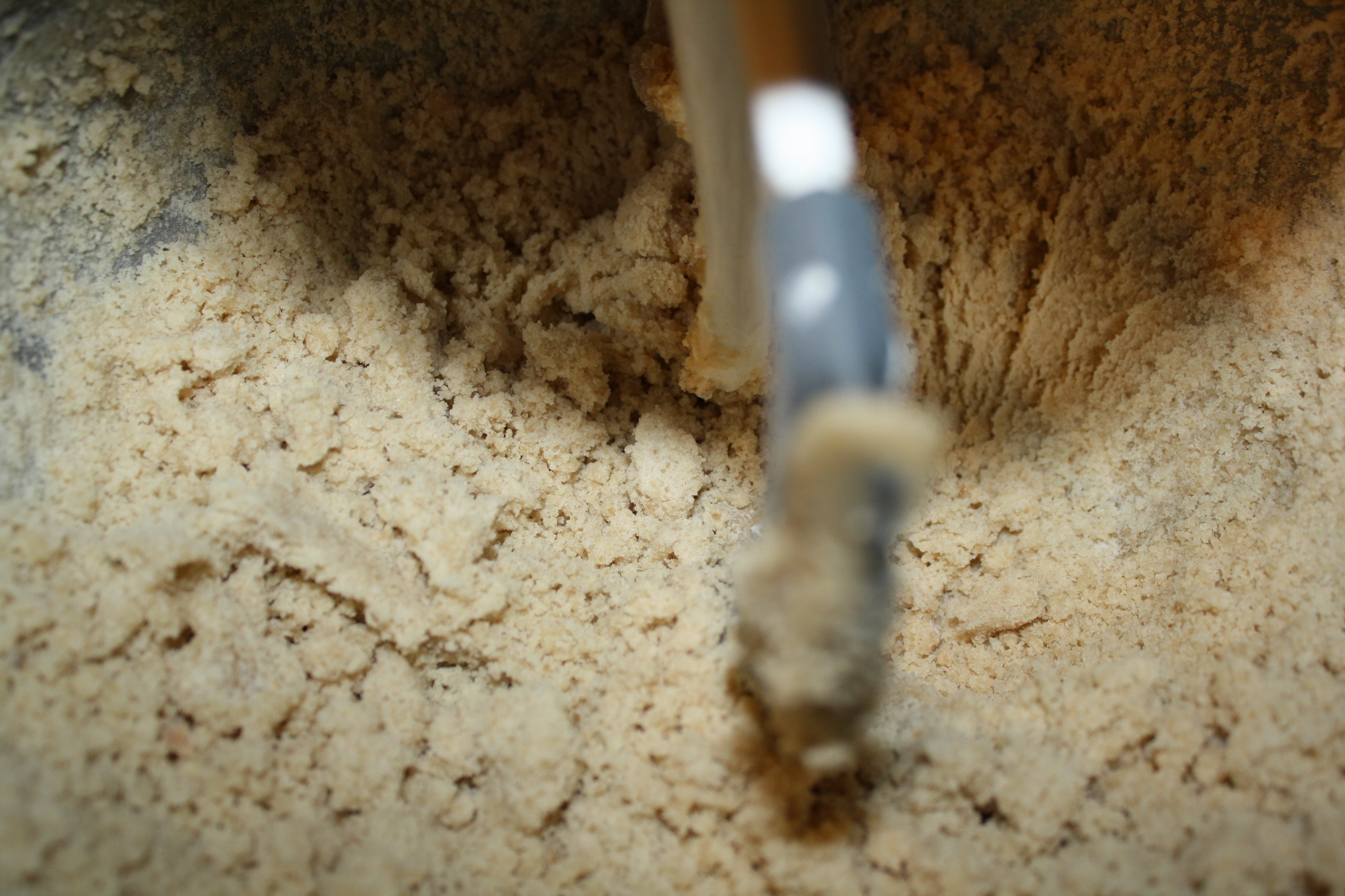 Then I put the flour, sugars and salt into the mixing bowl and stirred them together. However, the mixture was really dry, almost like the consistency of shortbread dry, so I added some cream. I know that the recipe calls for milk, but I thought that using a bit of whipping cream might make the frosting more like frosting.