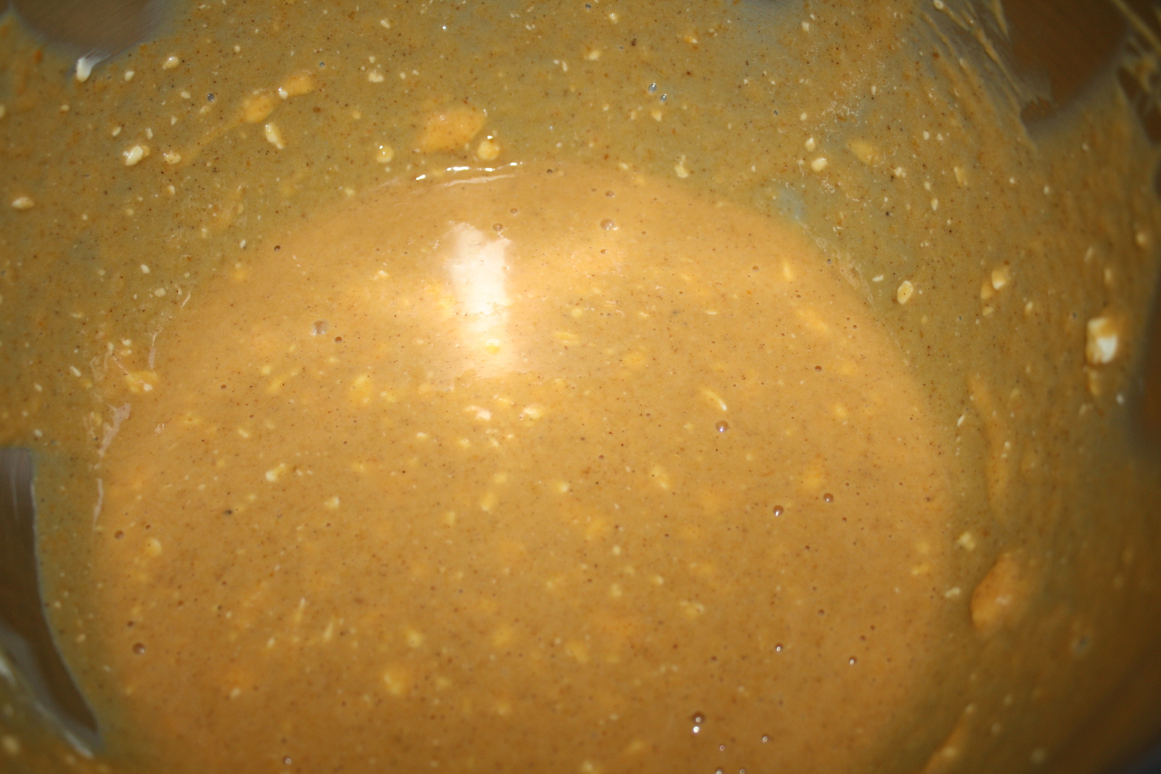 The pumpkin mix was prepared in the mixer, using pumpkin puree, sugar, eggs, cream cheese and pumpkin spice.