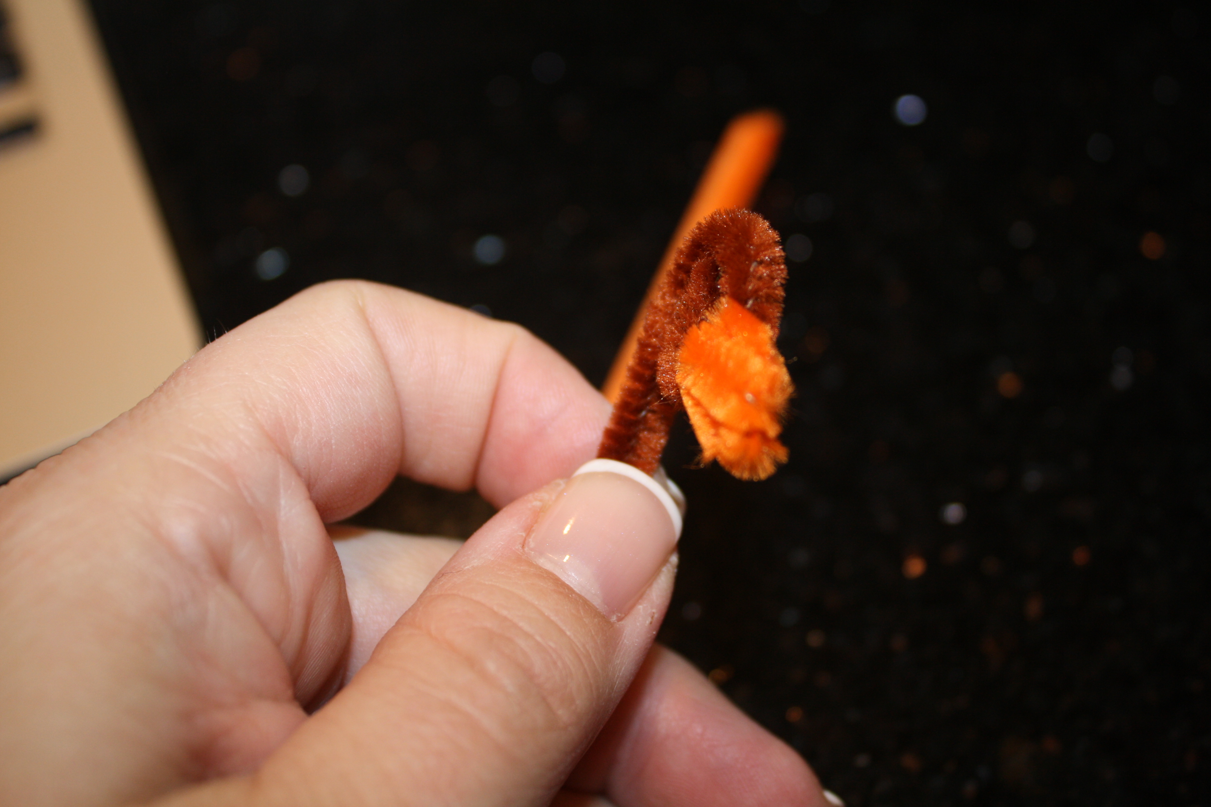 Then, a small pice of an orange pipe cleaner was curled around that,