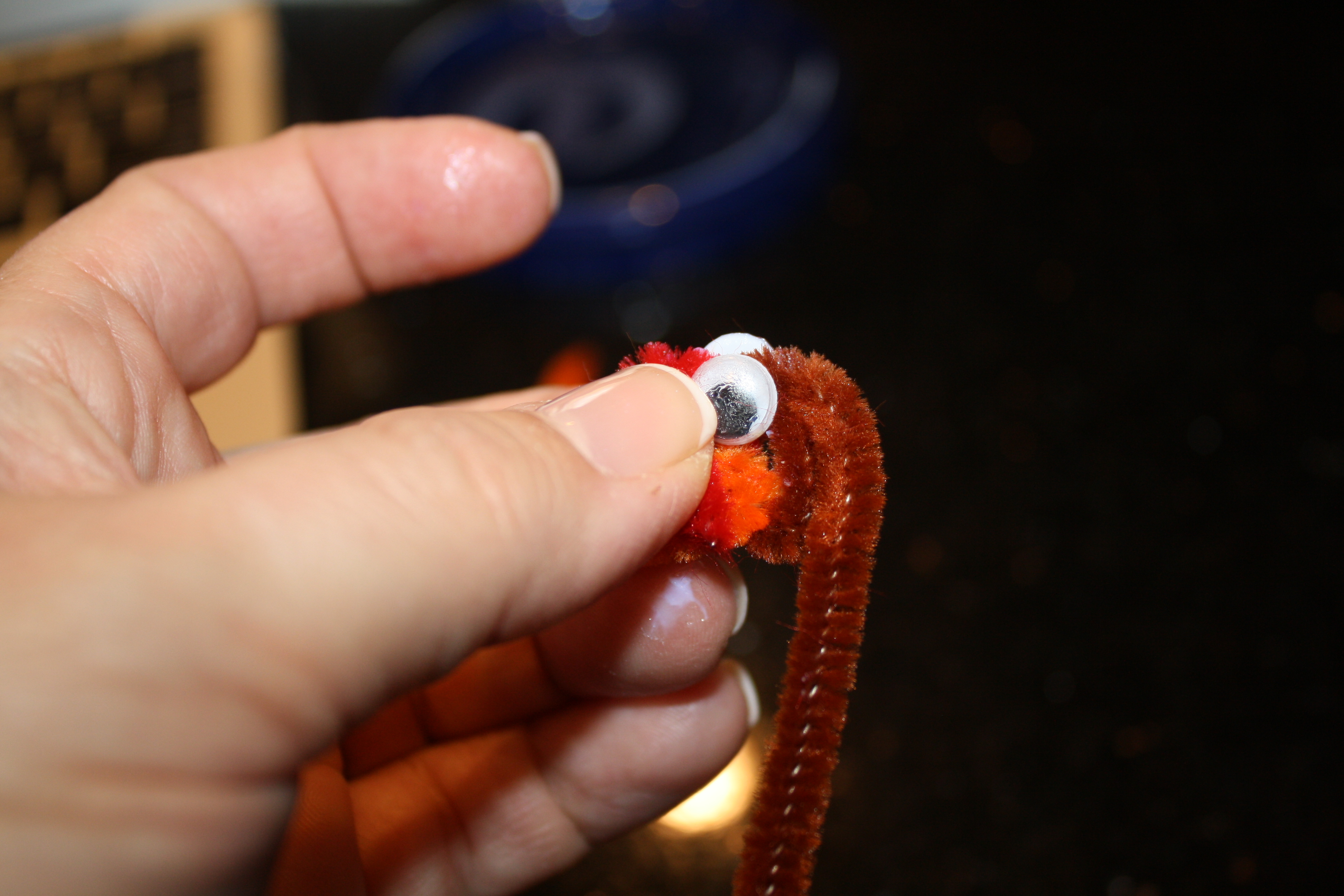Anyway…the heads for the turkeys were made by curling one end of the brown pipe cleaner.