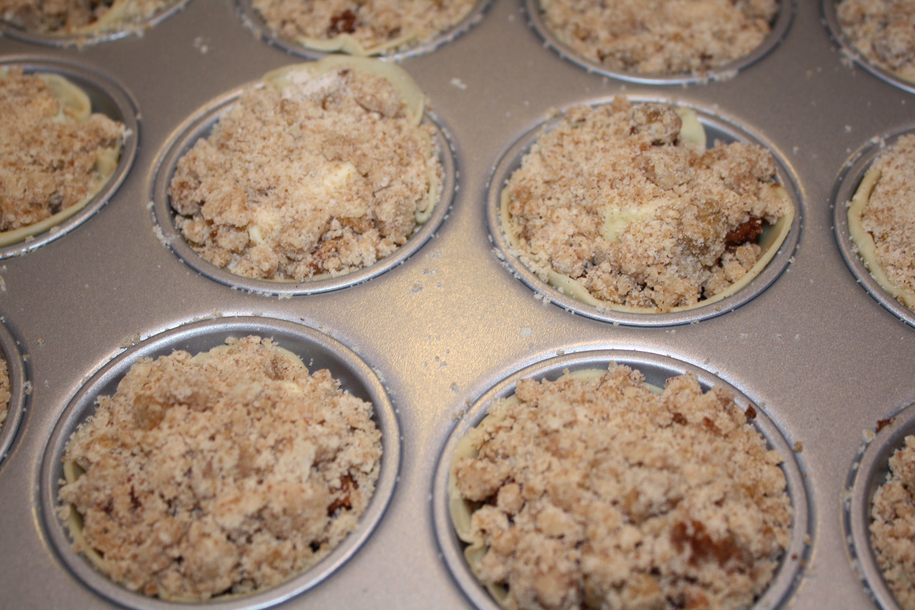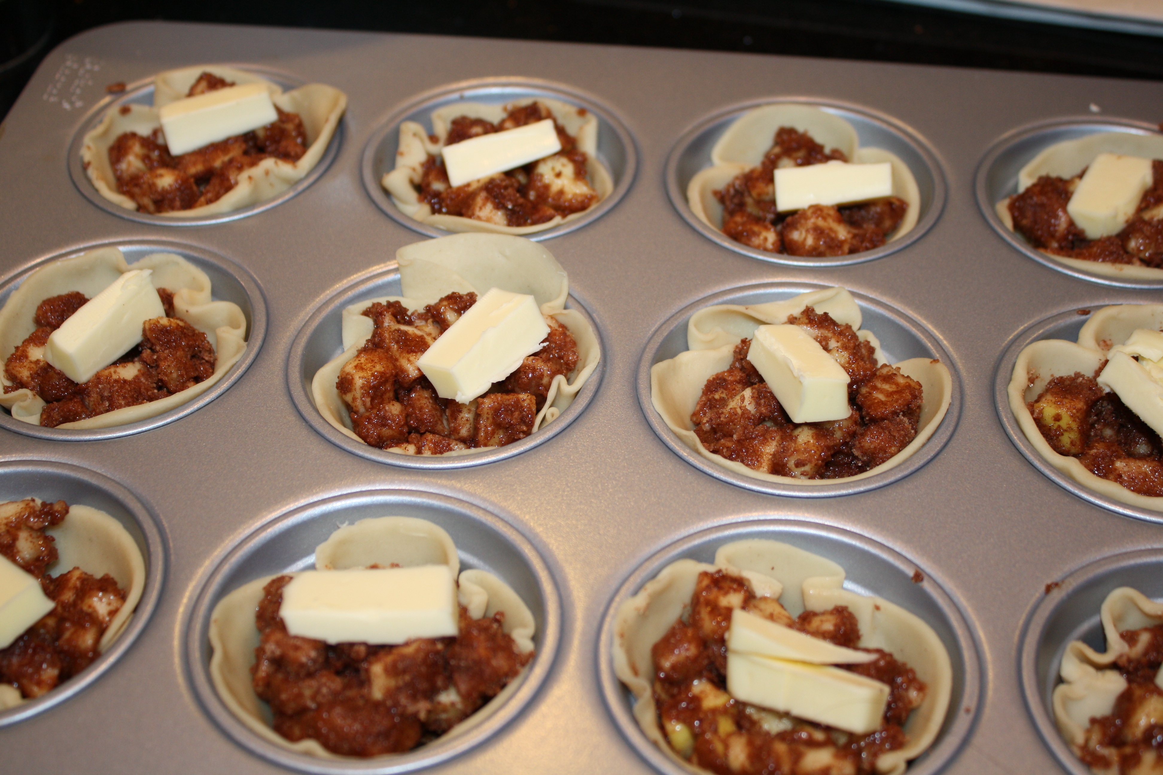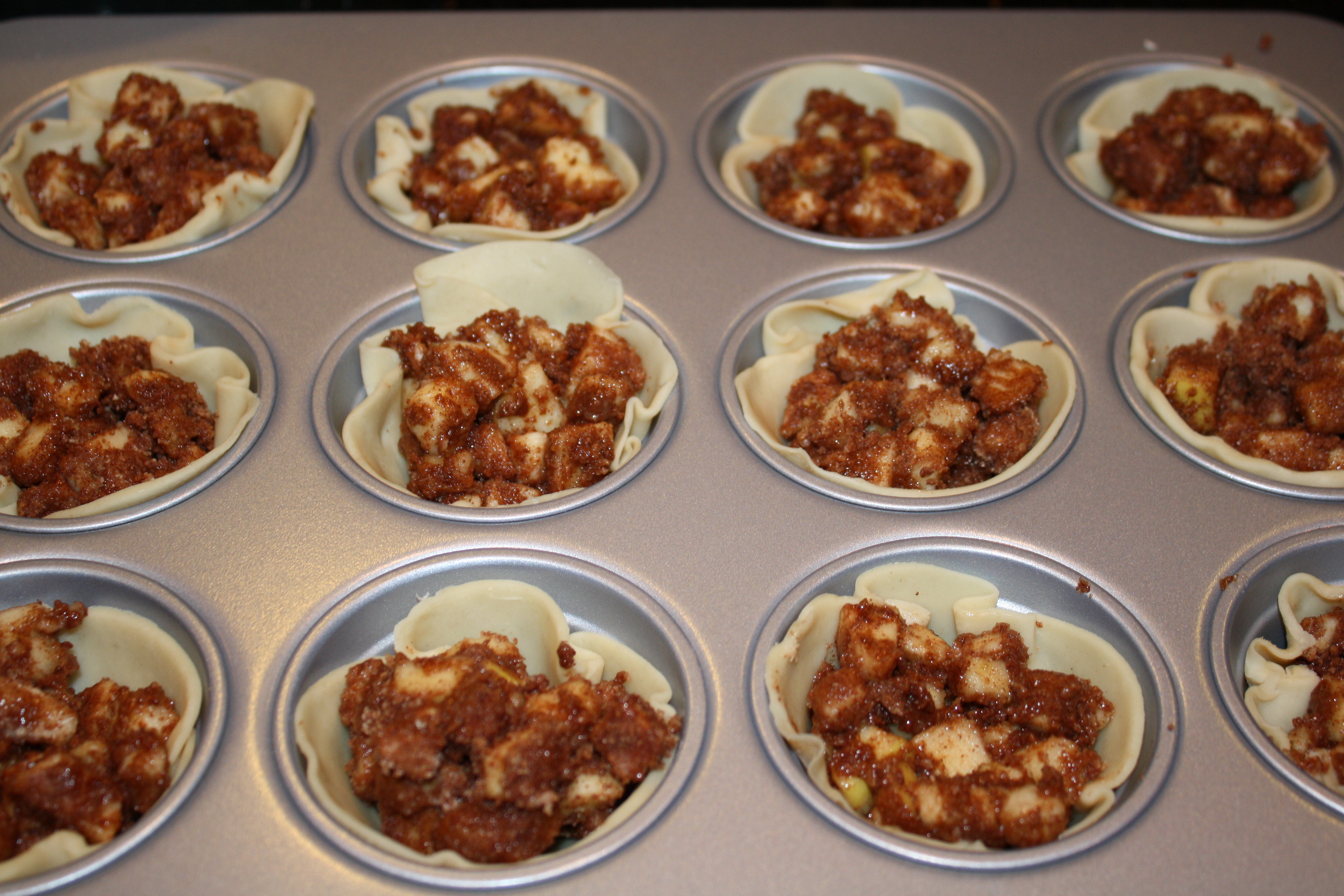 These were placed into the muffin pan, and filled with the apple mixture. I found no need to push down any dough at this point.