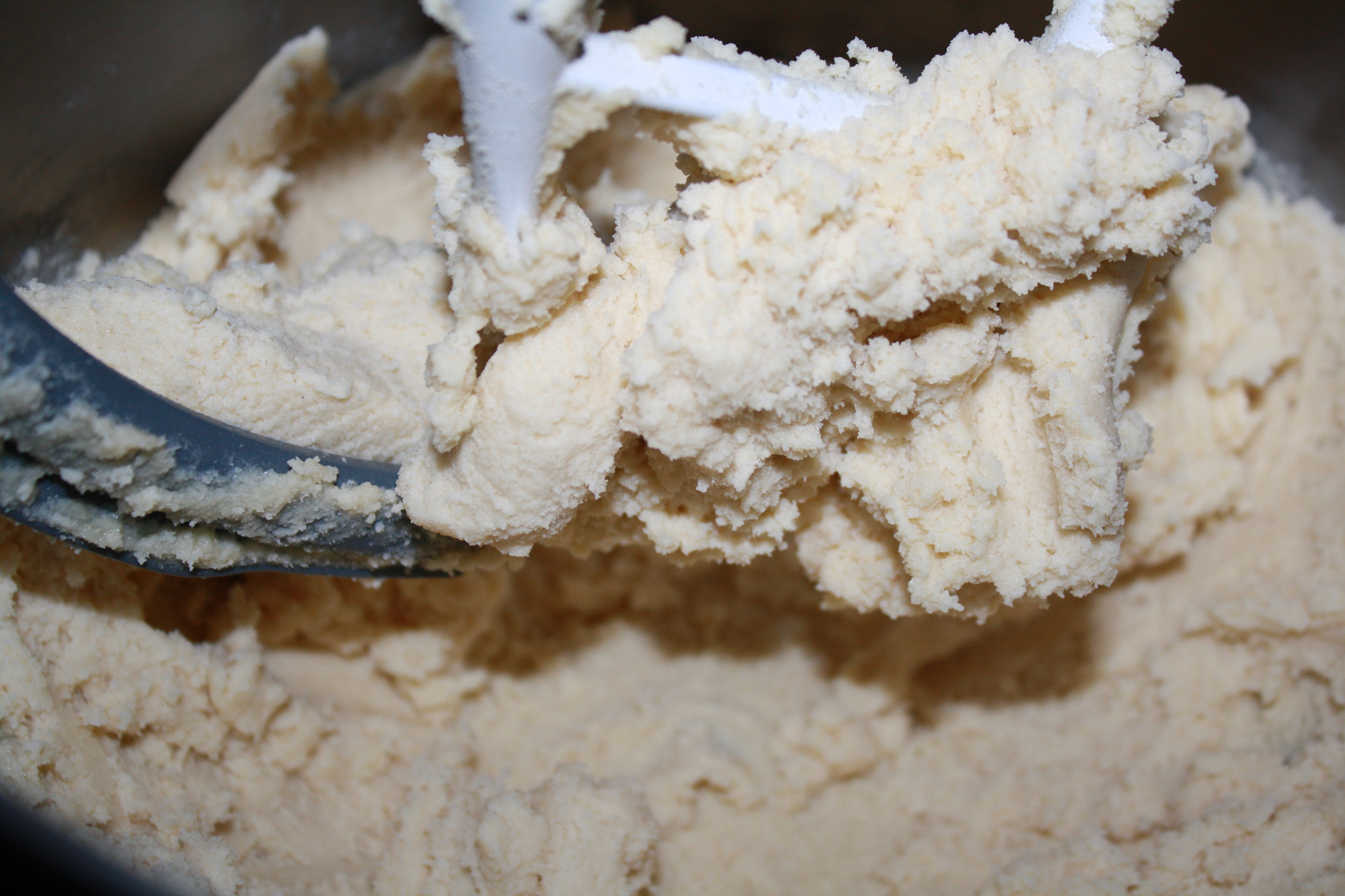 - Beat for 2-3 minutes, until dough pulls away from the side of the bowl.