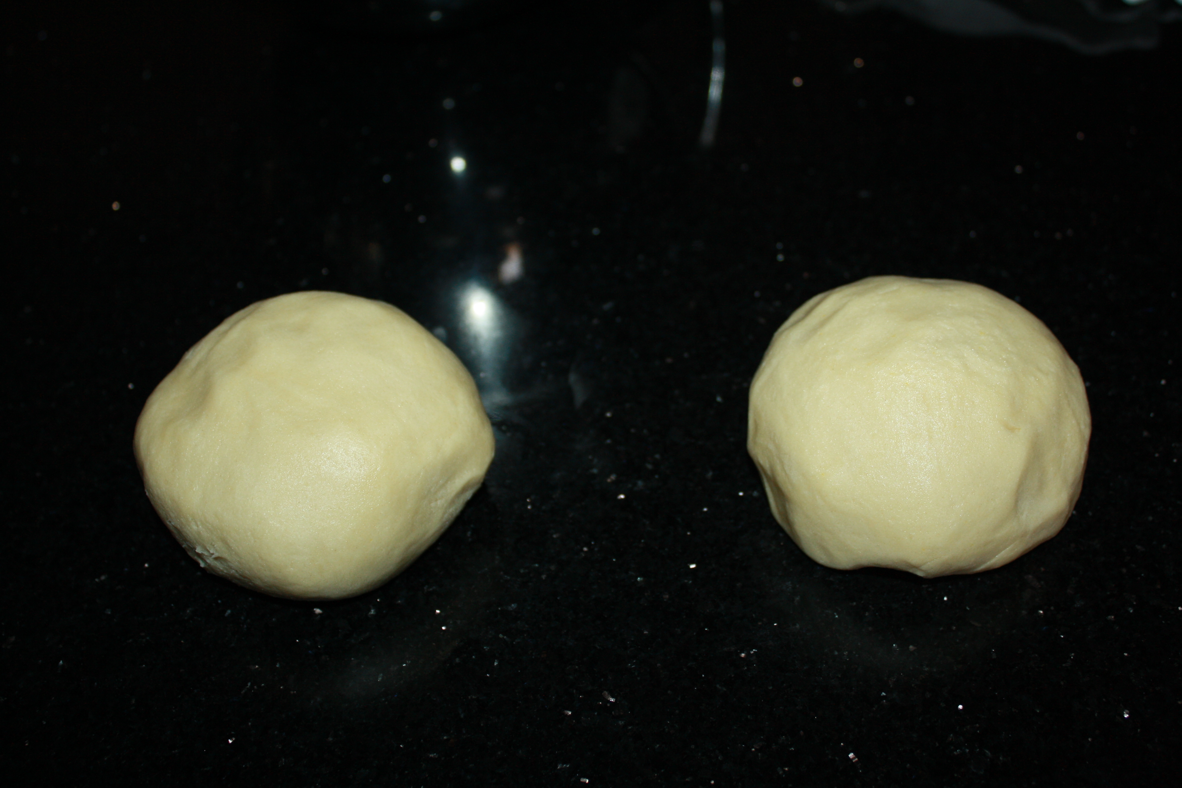 The dough was removed from the mixing bowl, and split into two relatively even-sized balls,