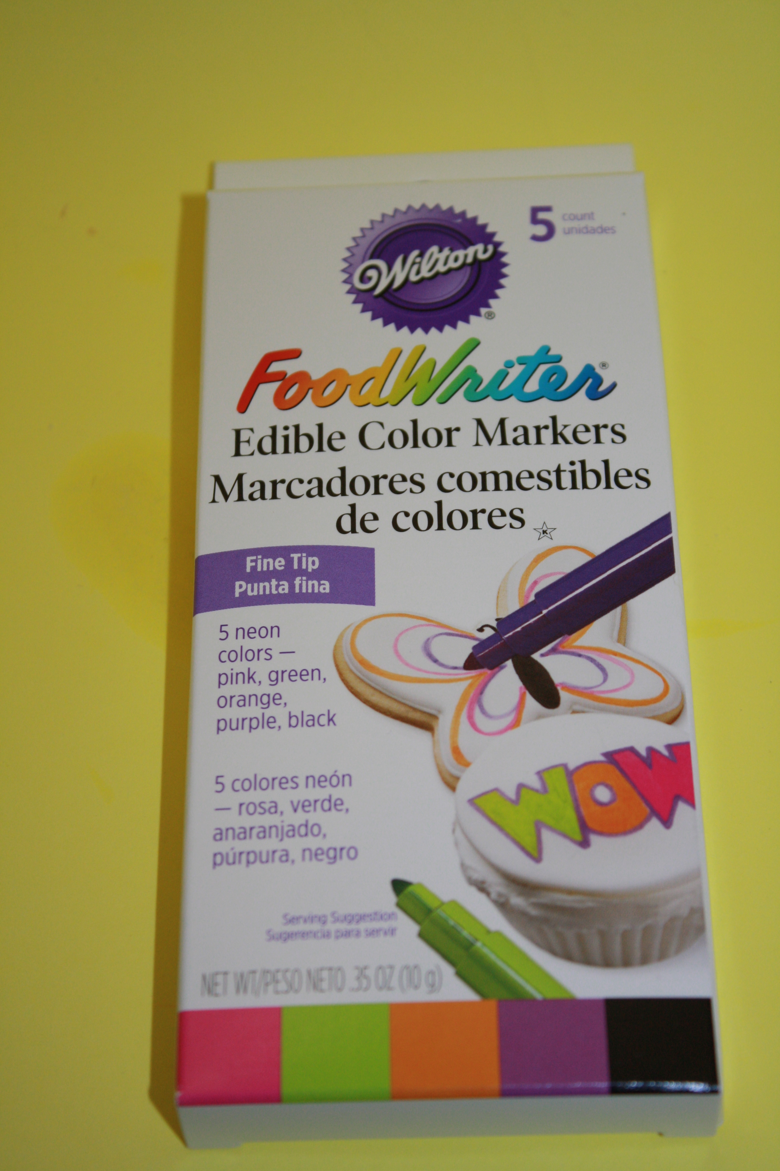 These were stirred together, milk and sugar first, then Jello and corn syrup. I used an icing bottle to apply the glaze to the cookies, but here is where I started to think I didn’t really need to stamp the cookies because the stamp disappeared under the glaze. I think I had figured that the icing would just fall into those indentations, which I would then be able to trace with the edible maker, but that turned out to be an incorrect hypothesis.