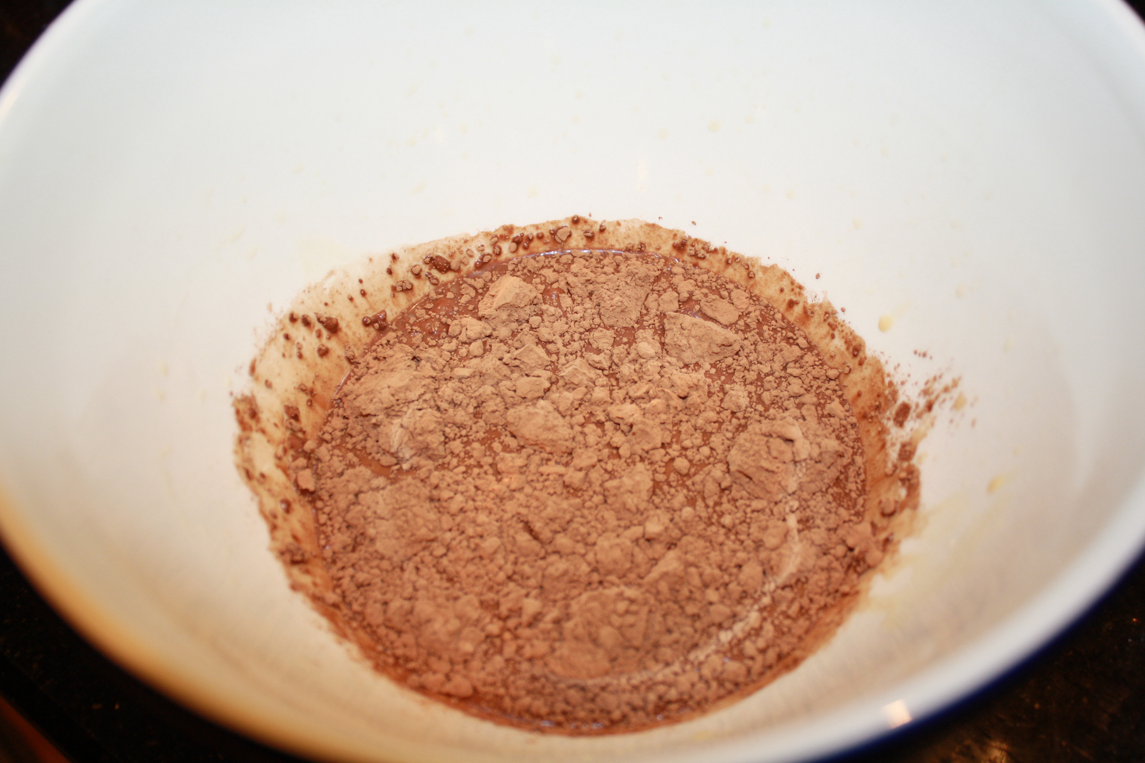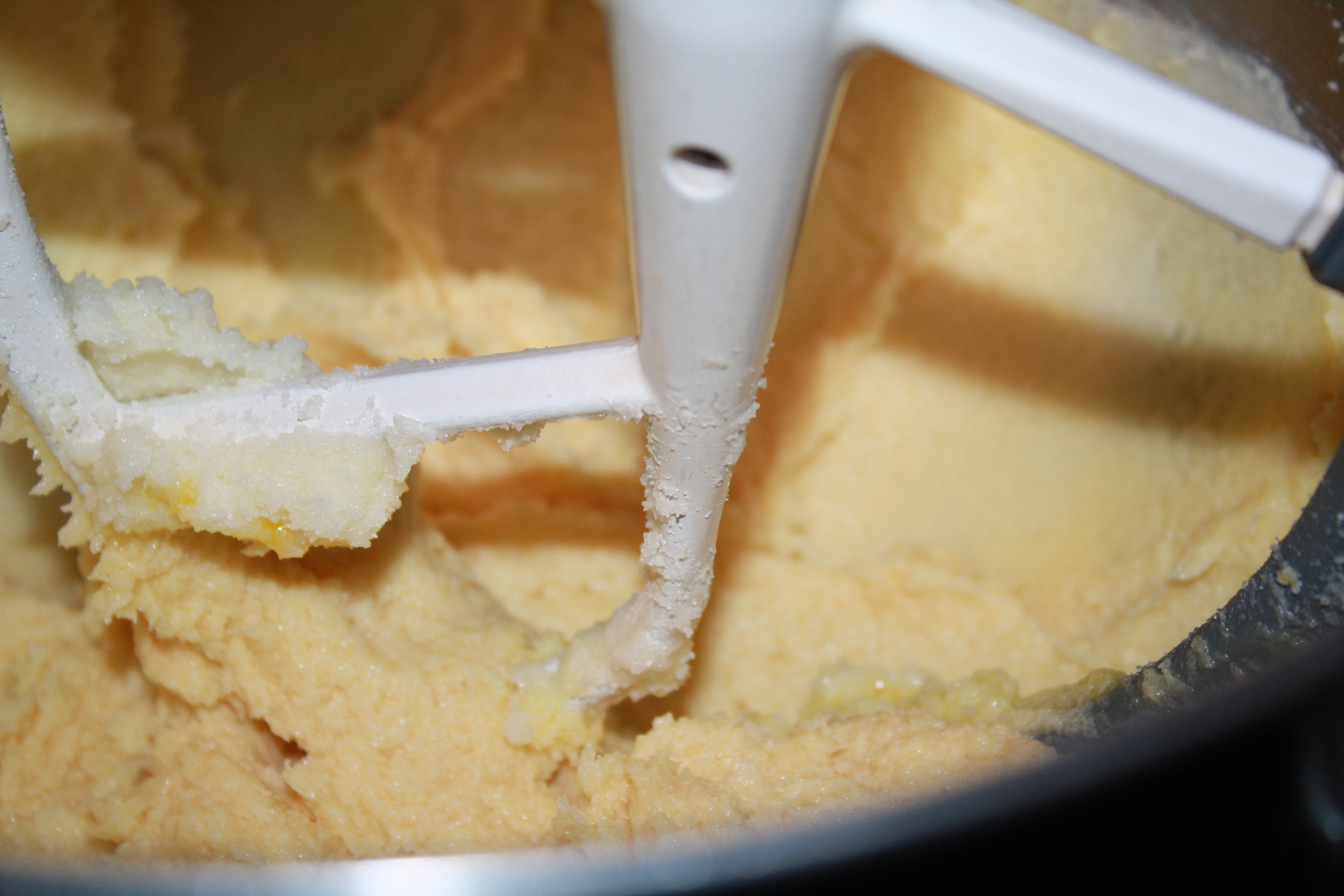 The flour, baking powder and salt were mixed in a separate bowl, and then added gradually to the sugar mixture, alternating with the Bailey’s.