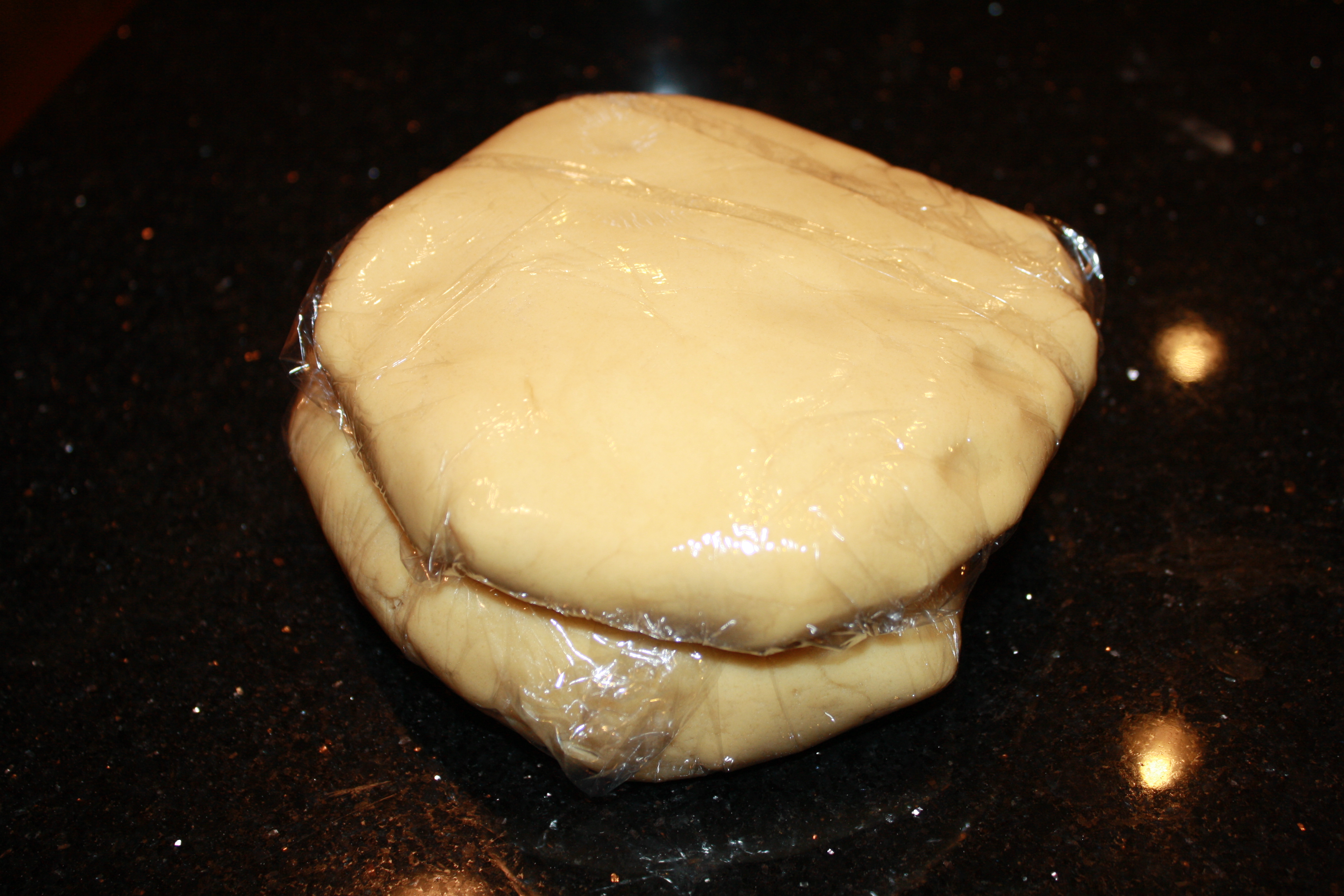 I divided that in two and put the discs in the refrigerator for about an hour to chill. (Though you could probably leave it overnight if you need to.)