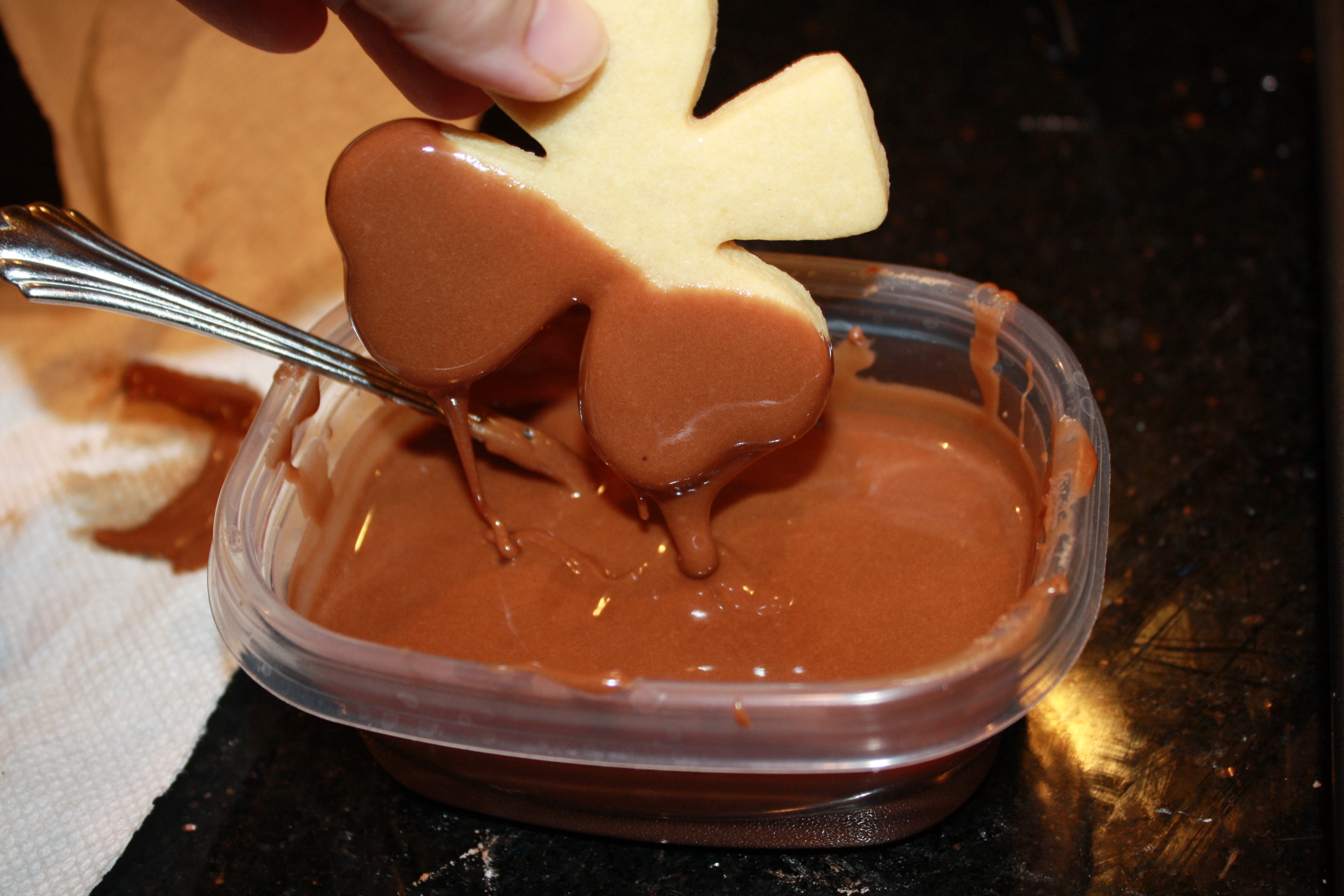Once the cookies had cooled, they were ready to be dipped in the glaze. It’s important to let them cool completely so that they are not too delicate to dip.