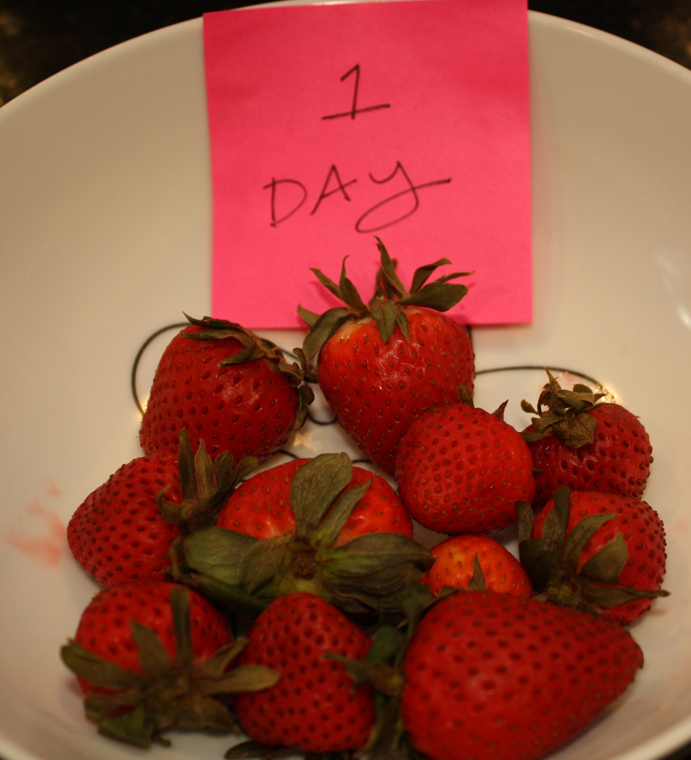 After trying it out though, I have to say that I think the above photo was taken on Day 1. Here is what happened to my strawberries: