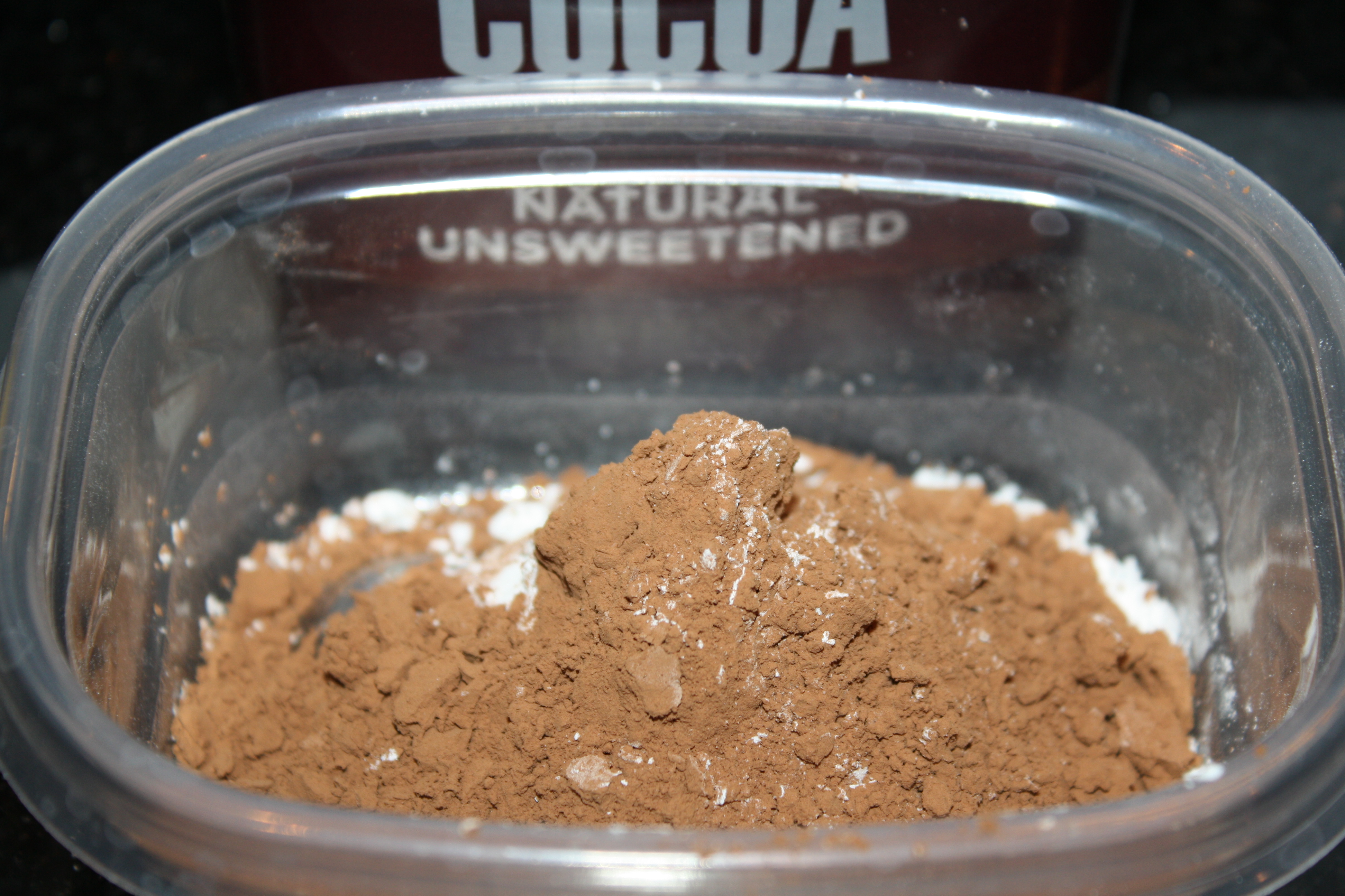 There are basically three ingredients to this recipe: cornstarch, cocoa and essential oil. I didn’t want to make as much as Small Home Big Start did, so I cut all of the quantities in half.