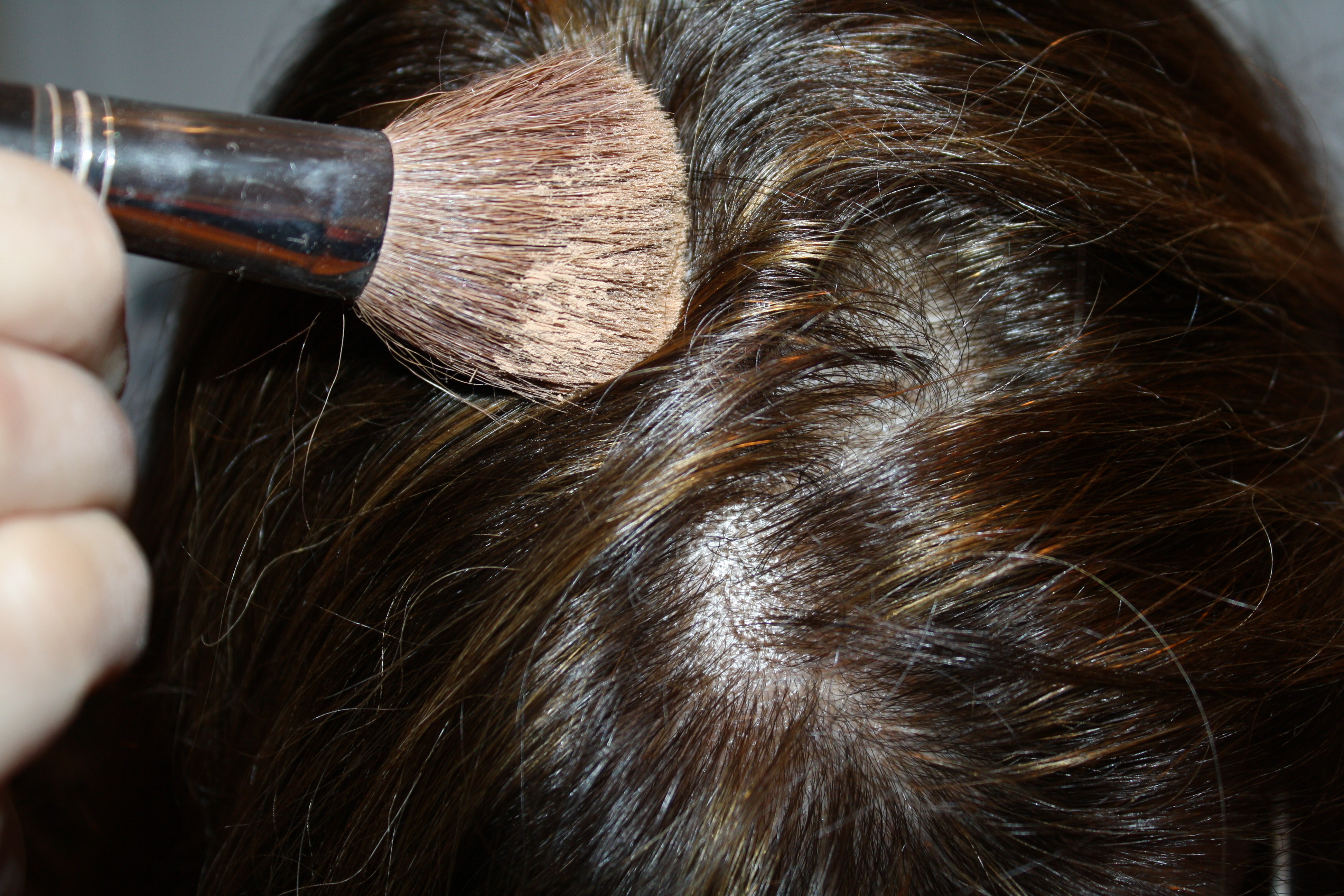 Using a make up brush, I dabbed sections of my hair at the roots,